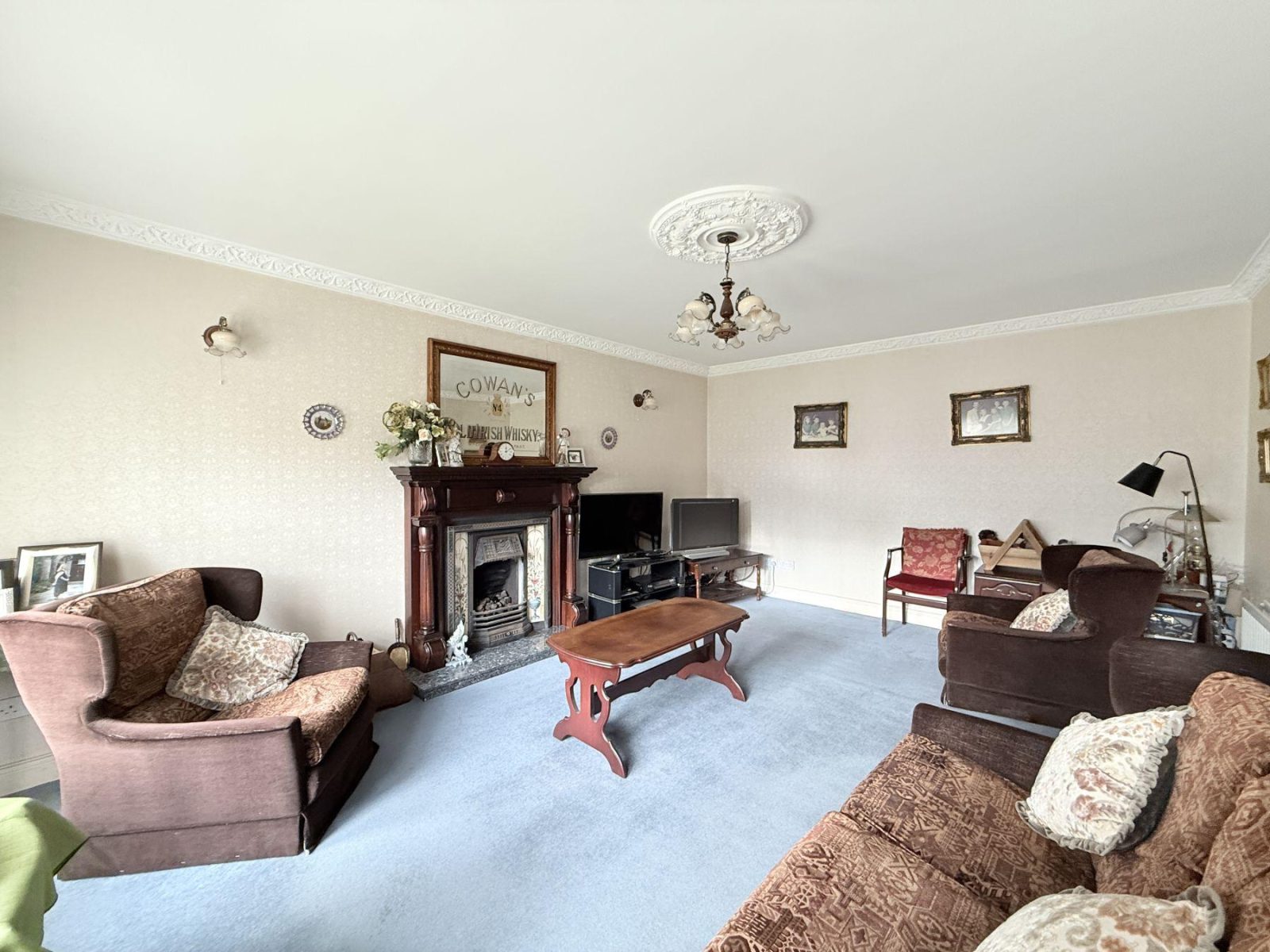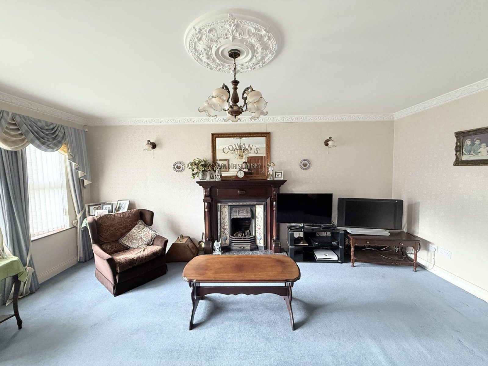 Lounge: An elegant and delicately decorated spacious reception room, carpet flooring, ceiling coving, open fire with marble hearth and wooden surround. Measurements: 5.49m x 3.90m.