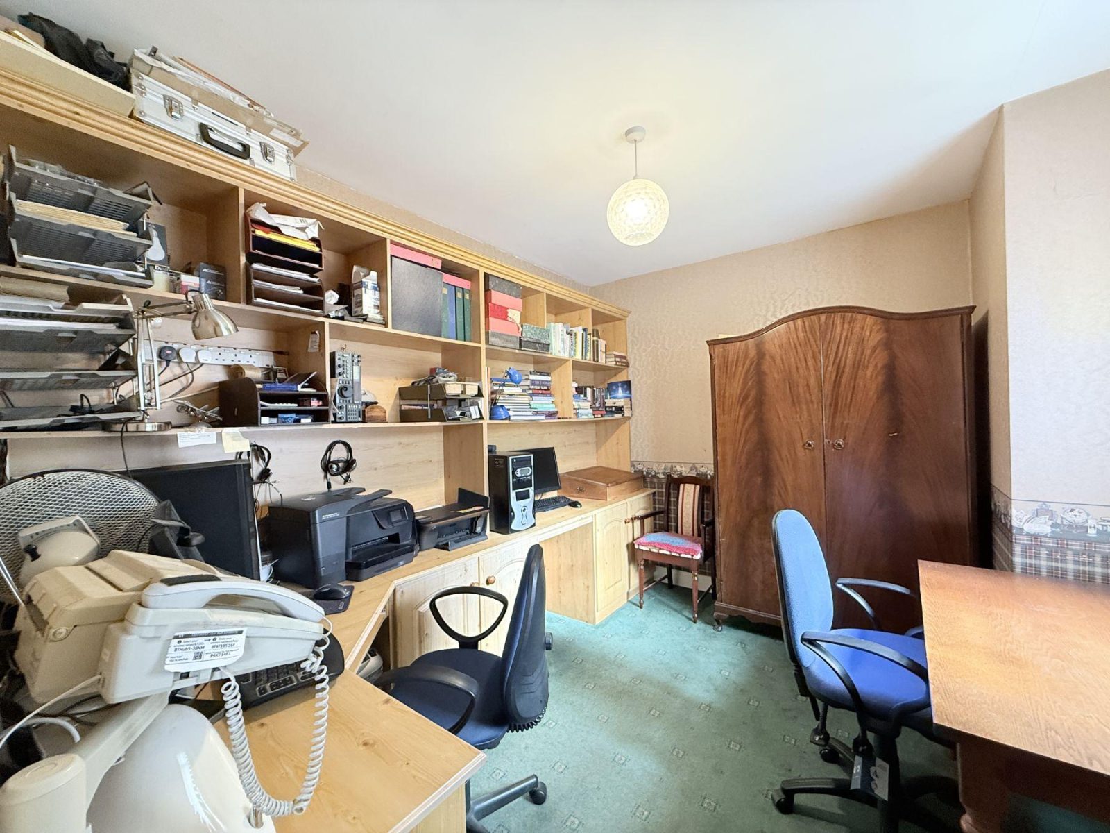 Bedroom 5: Currently being used as a home office with potential for a 5th bedroom, front facing complete with carpet flooring. 3.44m x 3m.