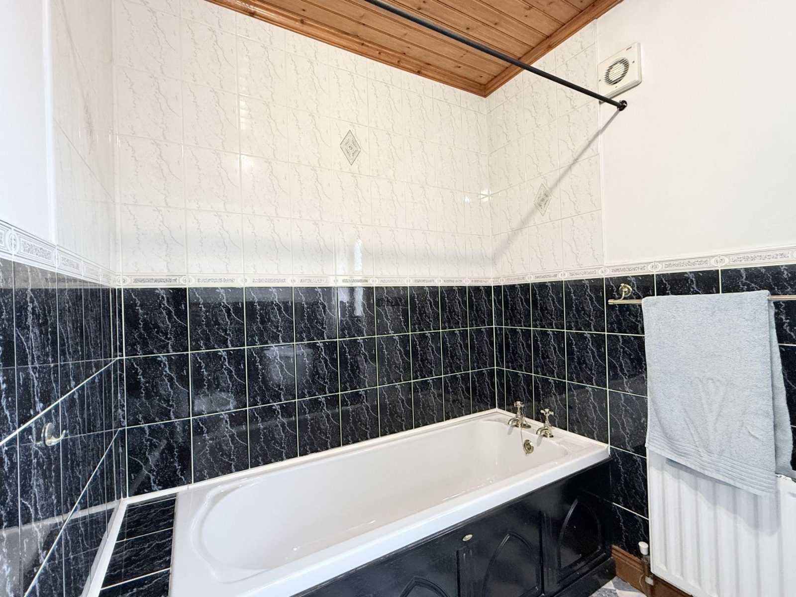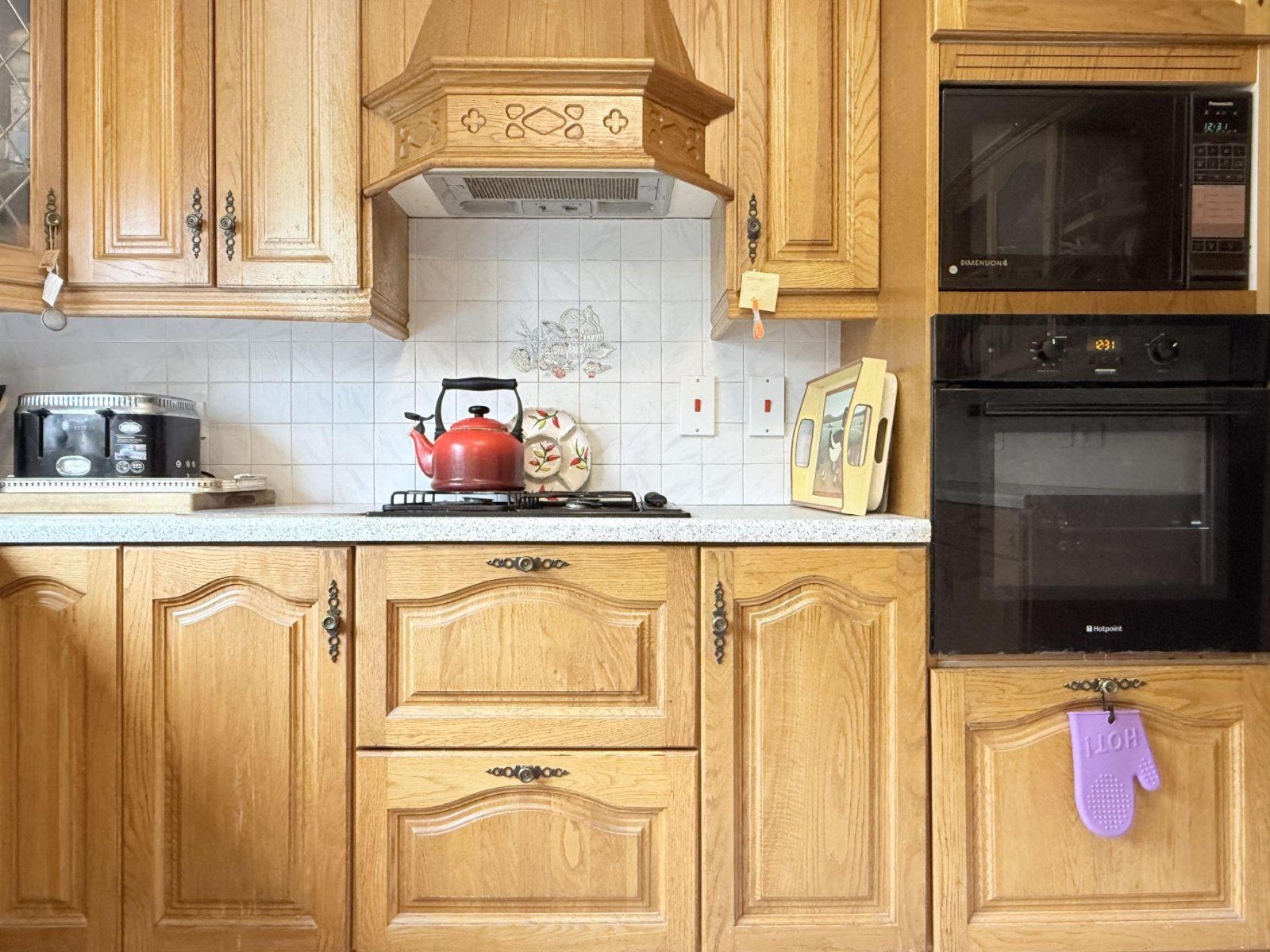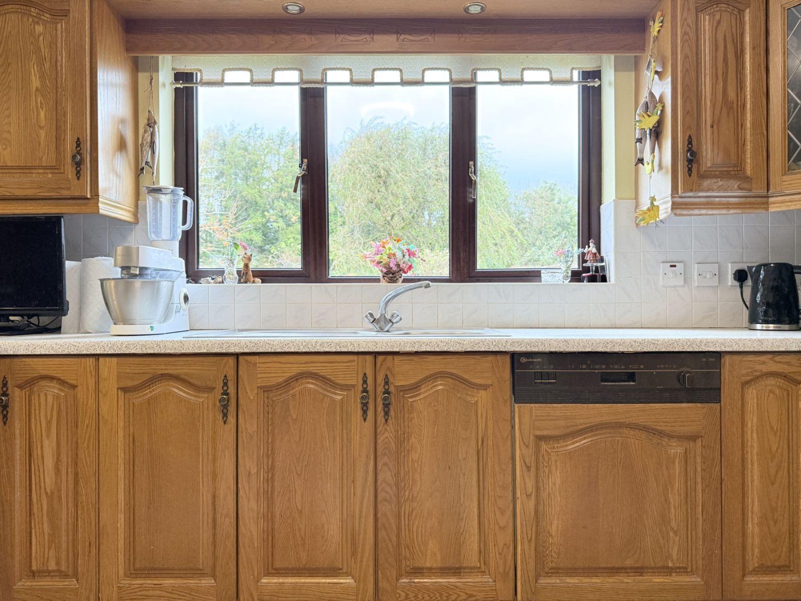 Kitchen / Dining: A spacious kitchen / dining area with tile flooring throughout. Solid wood low-and high-rise kitchen units, laminate worktops and tile splashback. The kitchen enjoys the following integrated appliances: 4 ring gas hob, integrated dishwasher, fridge and grill / oven. Measurements: 6m x 3.62m.