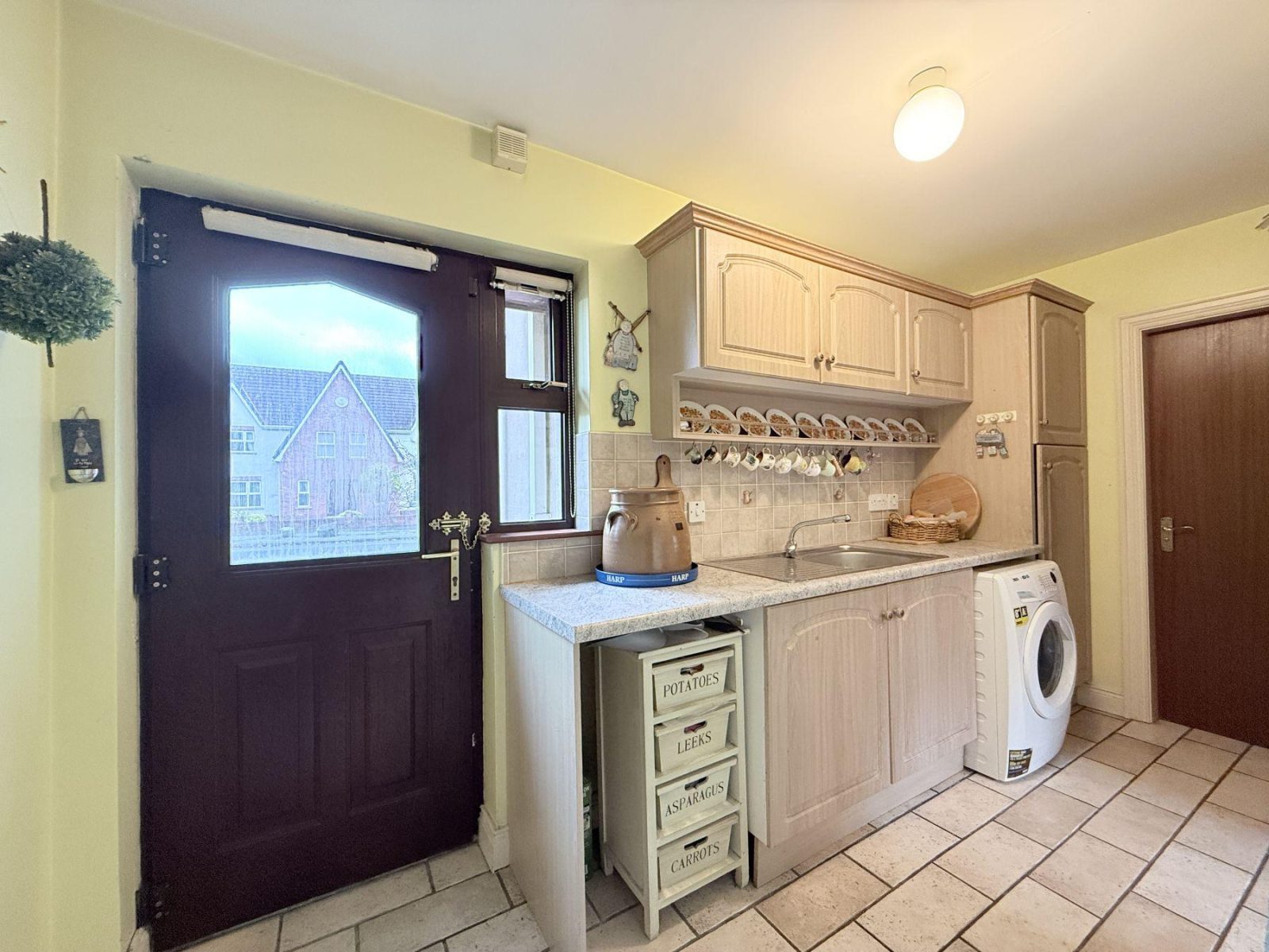 Utility Room: A convenient utility room with low-and high-rise units, tile flooring throughout, laminate worktop and services for washing machine and tumble dryer. Measurements: 4m x 1.66m.