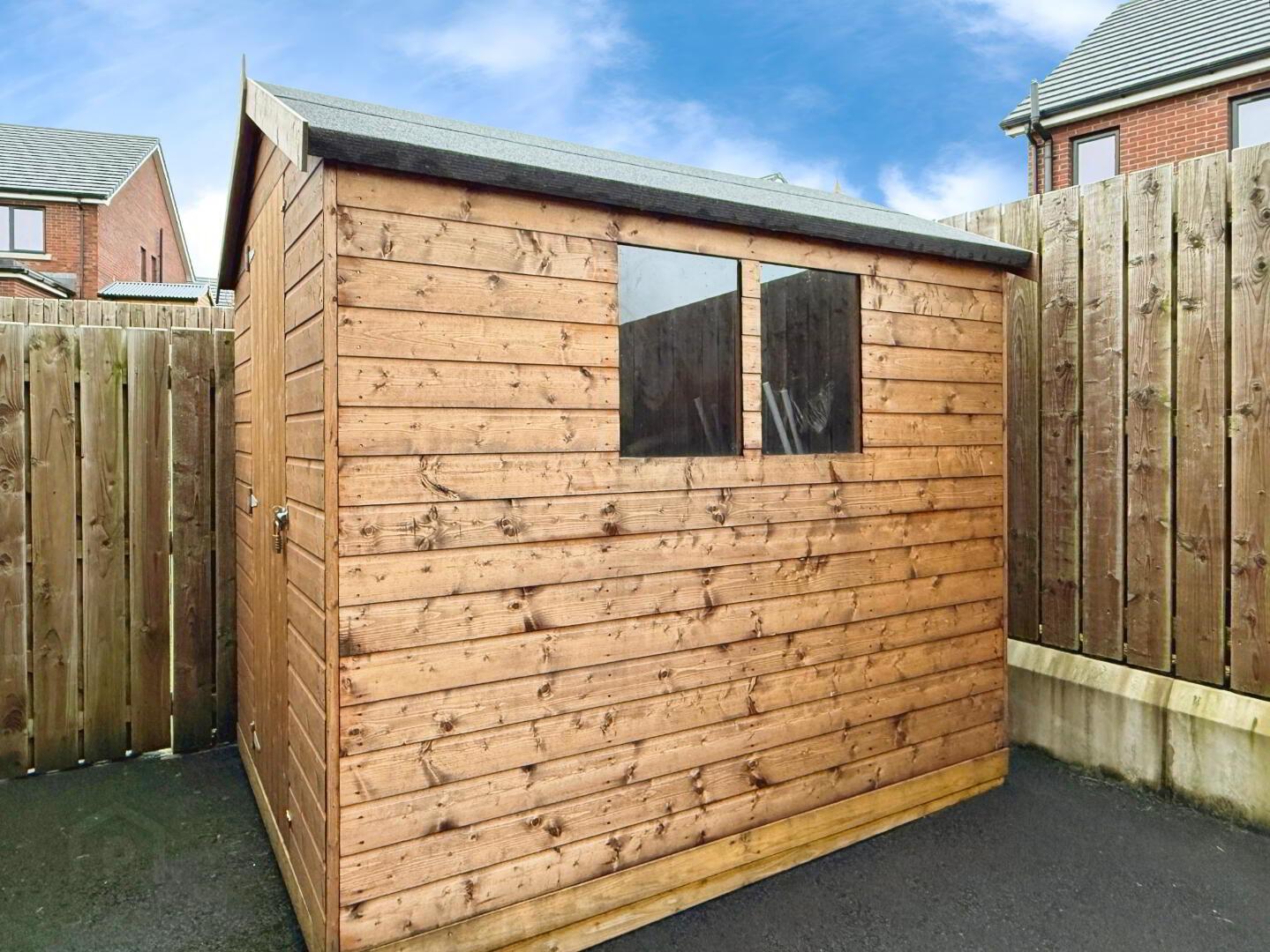 Externally, the property enjoys a well-maintained front garden with lawn, paved pathway and a tarmac driveway providing ample parking to the side and front. To the rear is a private enclosed garden with lawn, boundary fencing, and two patio area's—perfect for outdoor entertaining. A garden shed with electric supply is included in the sale. The home further benefits from exterior lighting, CCTV and an alarm system.