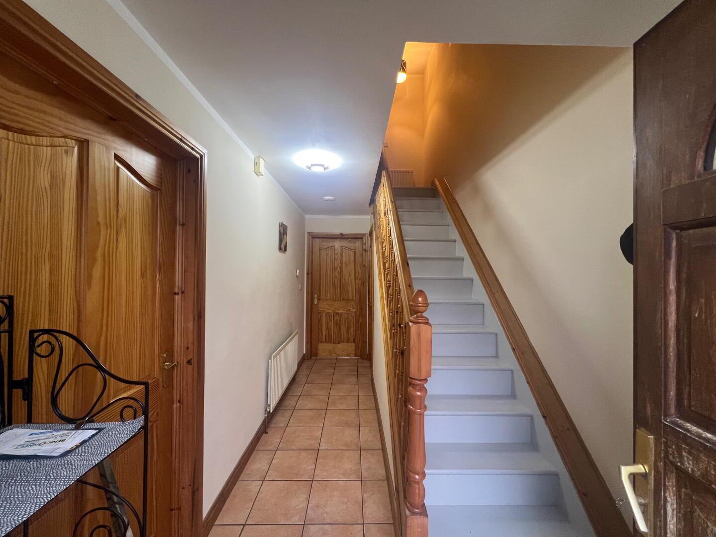 Entrance: A bright, spacious entrance with tile flooring leading to wooden stairwell. Measurements: 4.74m x 2.05m