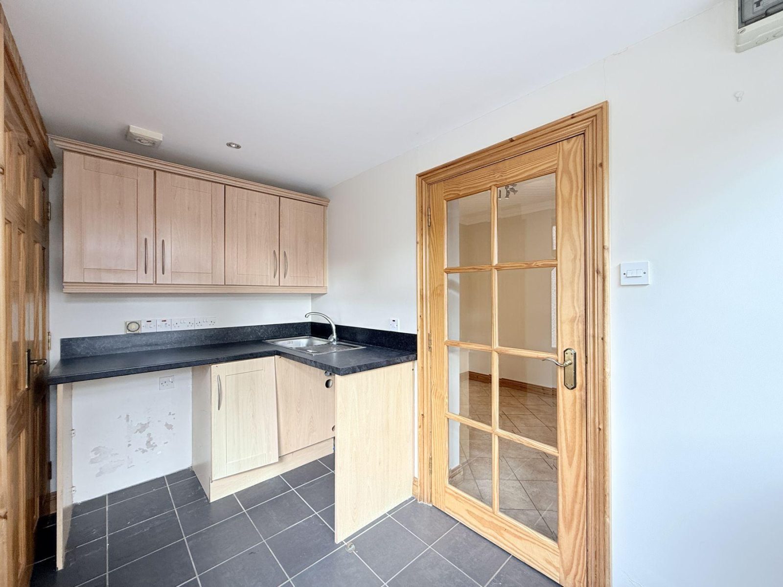 Utility: Convenient utility room with tile flooring, L shaped utility with low and high rise units with services for tumble dryer and washing machine. Measurements: 3m x 1.72m.