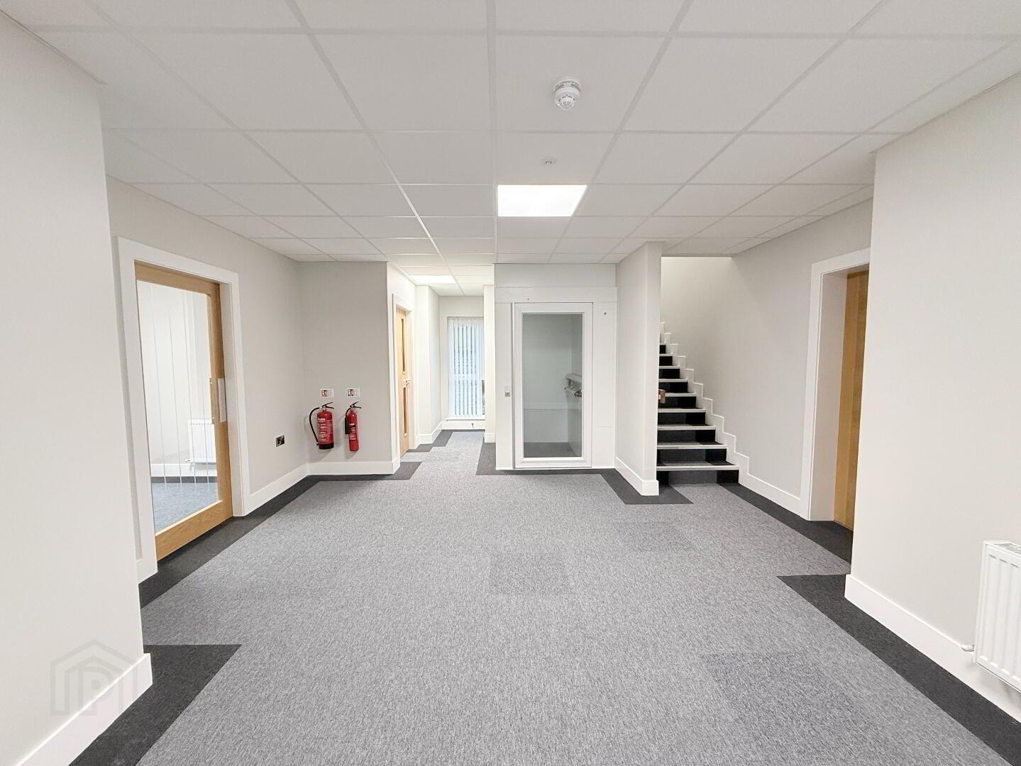 The building further benefits from a secure entrance with buzzer access, an internal lift and staircase to the first floor, solar panels, and low-maintenance external landscaping including tarmac car parking.