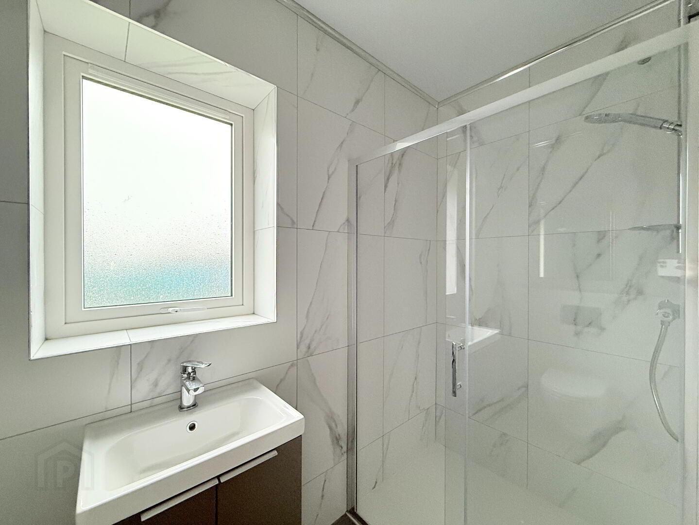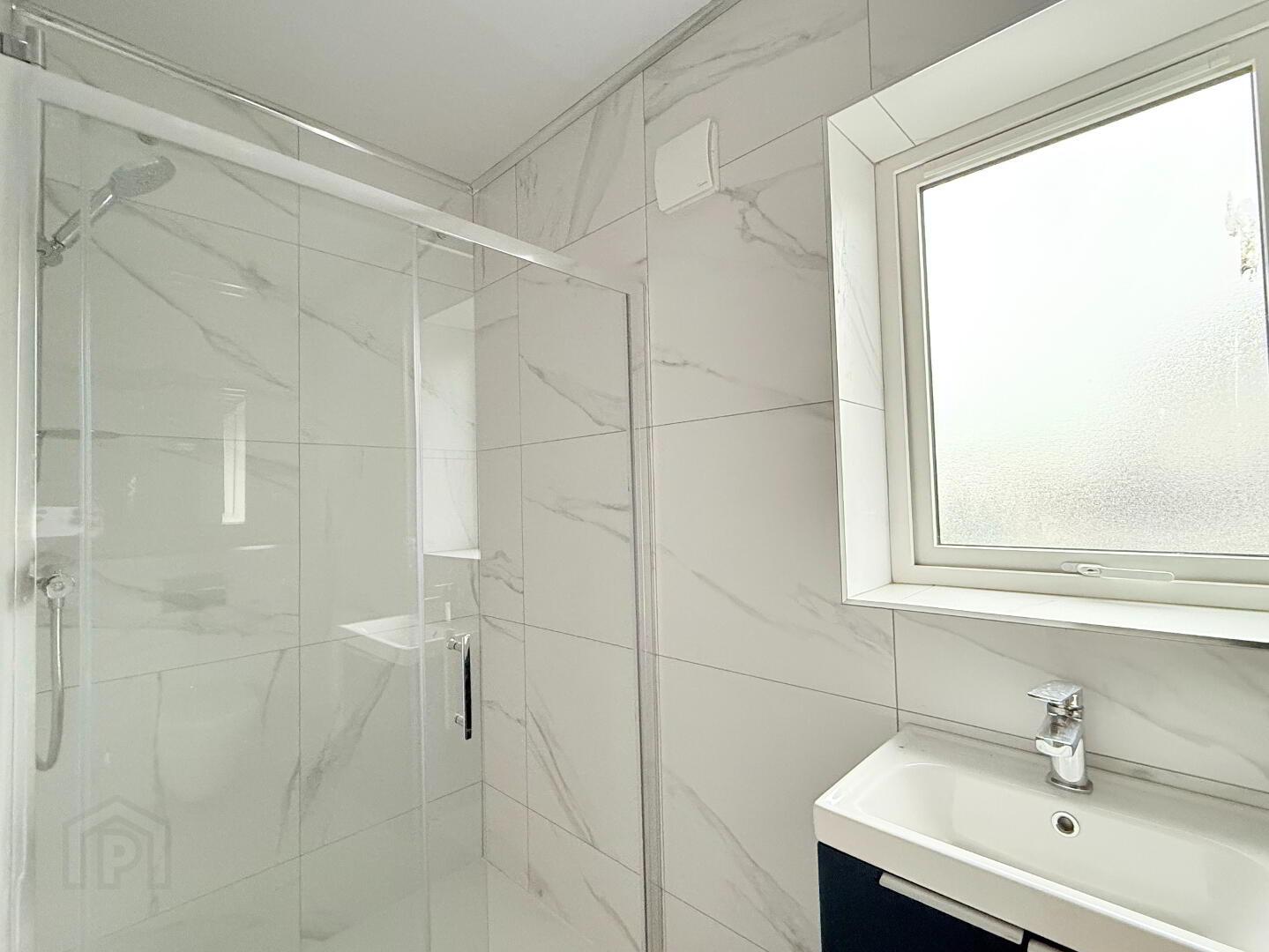 En-suite: 3m x 1.17m, tiled, power shower, vanity unit