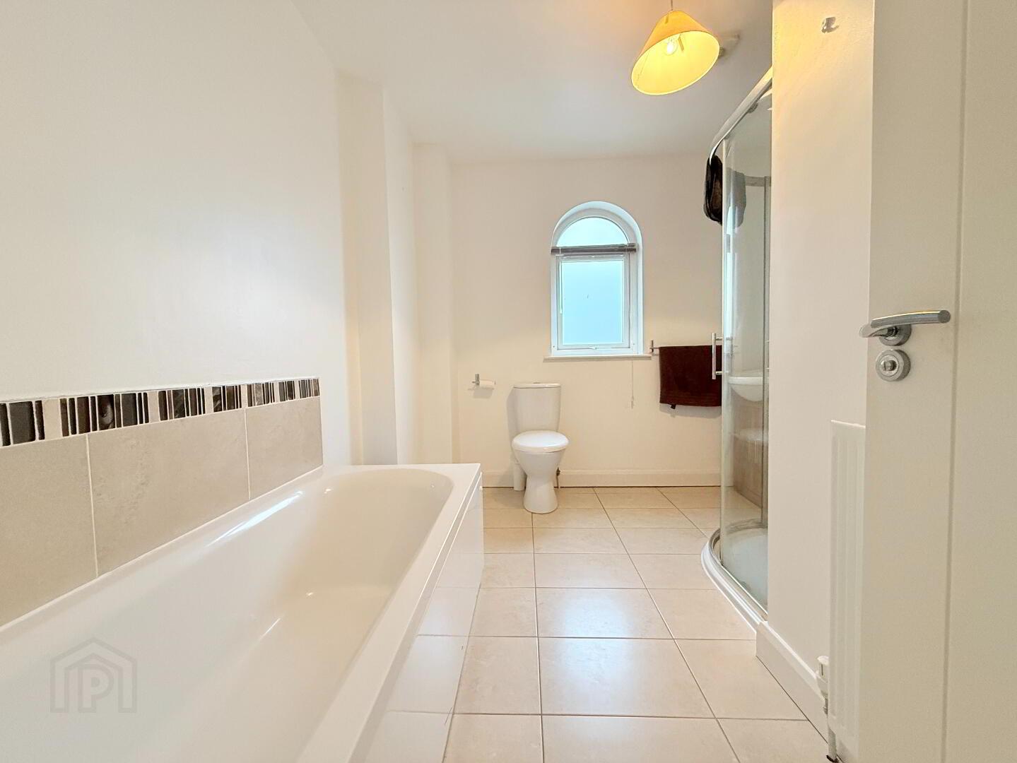 Bathroom: A four-piece bathroom suite with electric shower, bath, vanity unit complete with high-quality sanitary ware. Measurements: 2.68m x 3m.