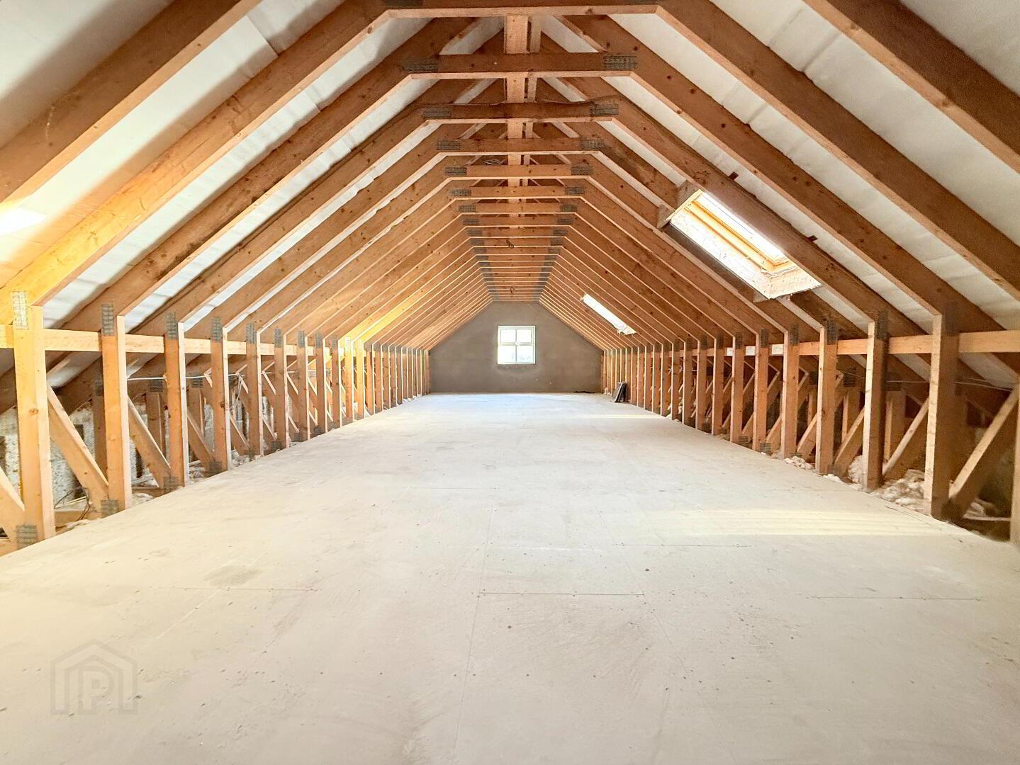 Garage: A large, detached garage with roller door, passenger door complete with electrics and staircase to first floor providing an additional 560 Sq ft with first fix complete, ideal for further development. Measurements: 11.41m x 5.51m.