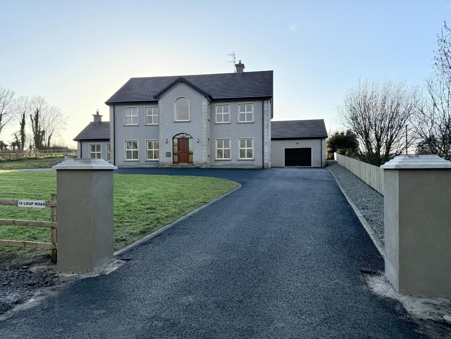 McAteer Solutions Estate Agents are delighted to welcome for sale this beautiful, four-bedroom, three reception family home with detached garage, superbly located off the Loup Road, Moneyglass only two miles from Toomebridge. Occupying a generous 0.3-acre site surrounded by open countryside, the property offers beautifully appointed accommodation finished to an impressive standard throughout.