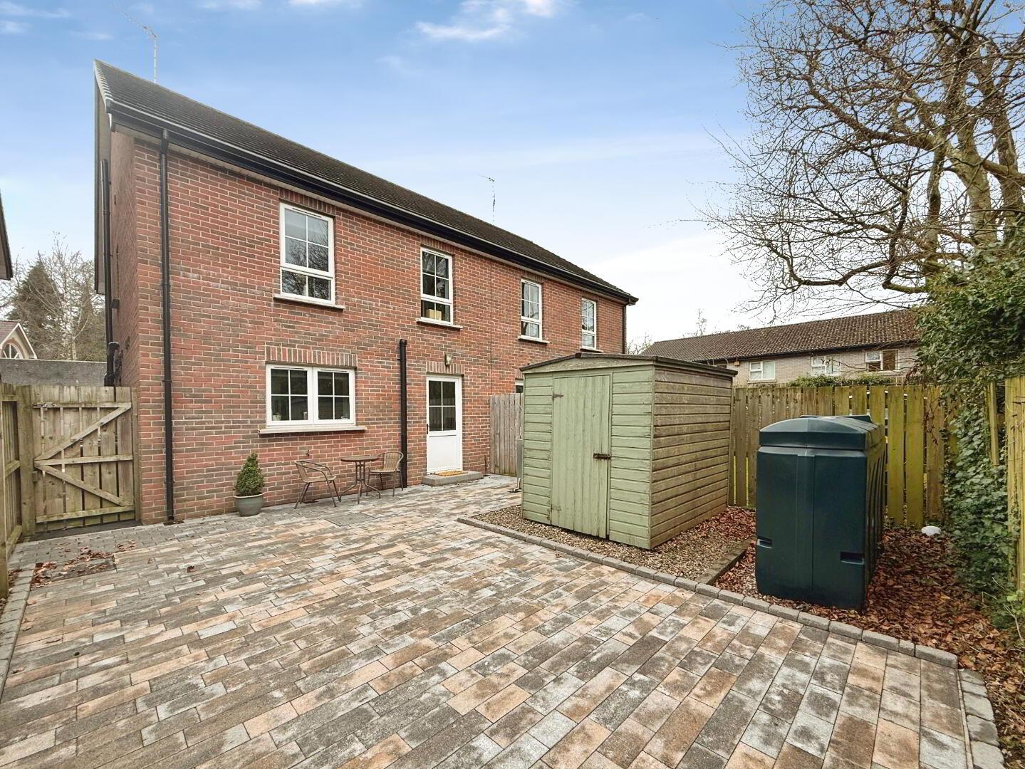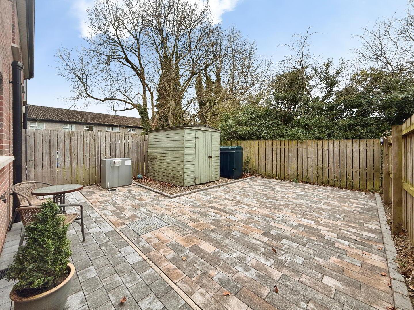 Externally, the property benefits from a tarmac driveway providing parking for two vehicles. To the rear, bespoke gates and boundary fencing enclose a private garden, complete with low maintenance paved patio area — perfect for outdoor dining and relaxation. Garden shed is also included in sale.