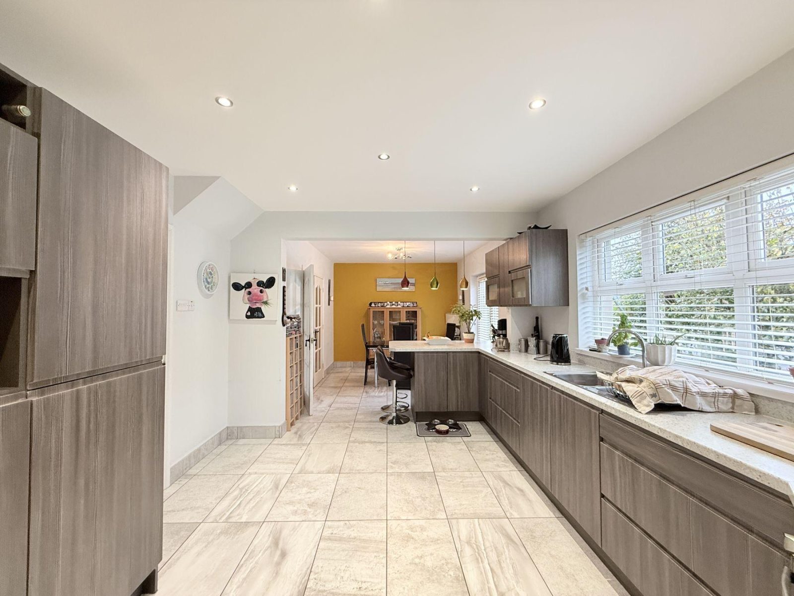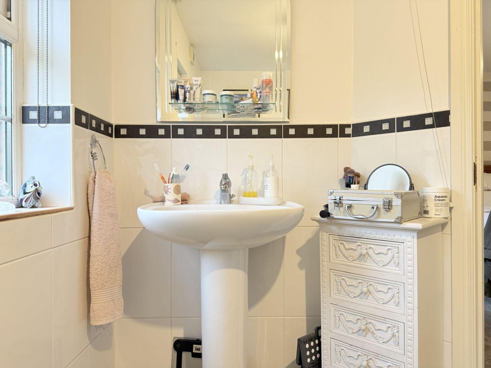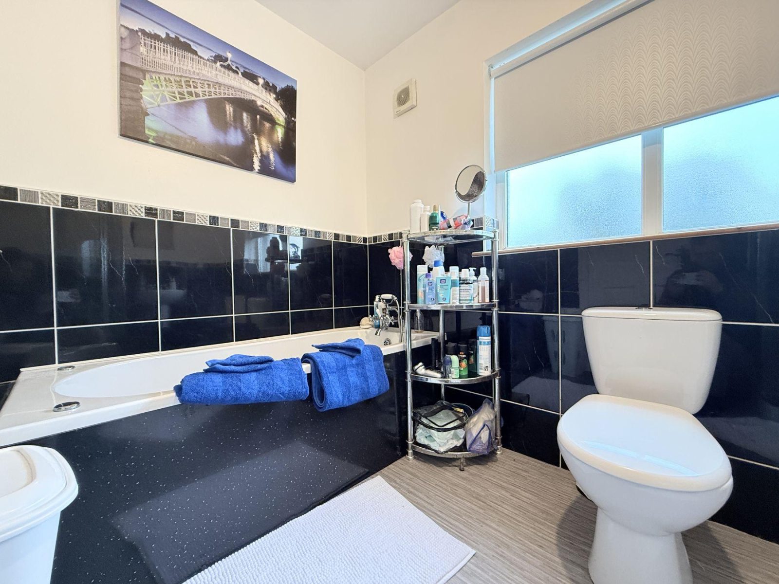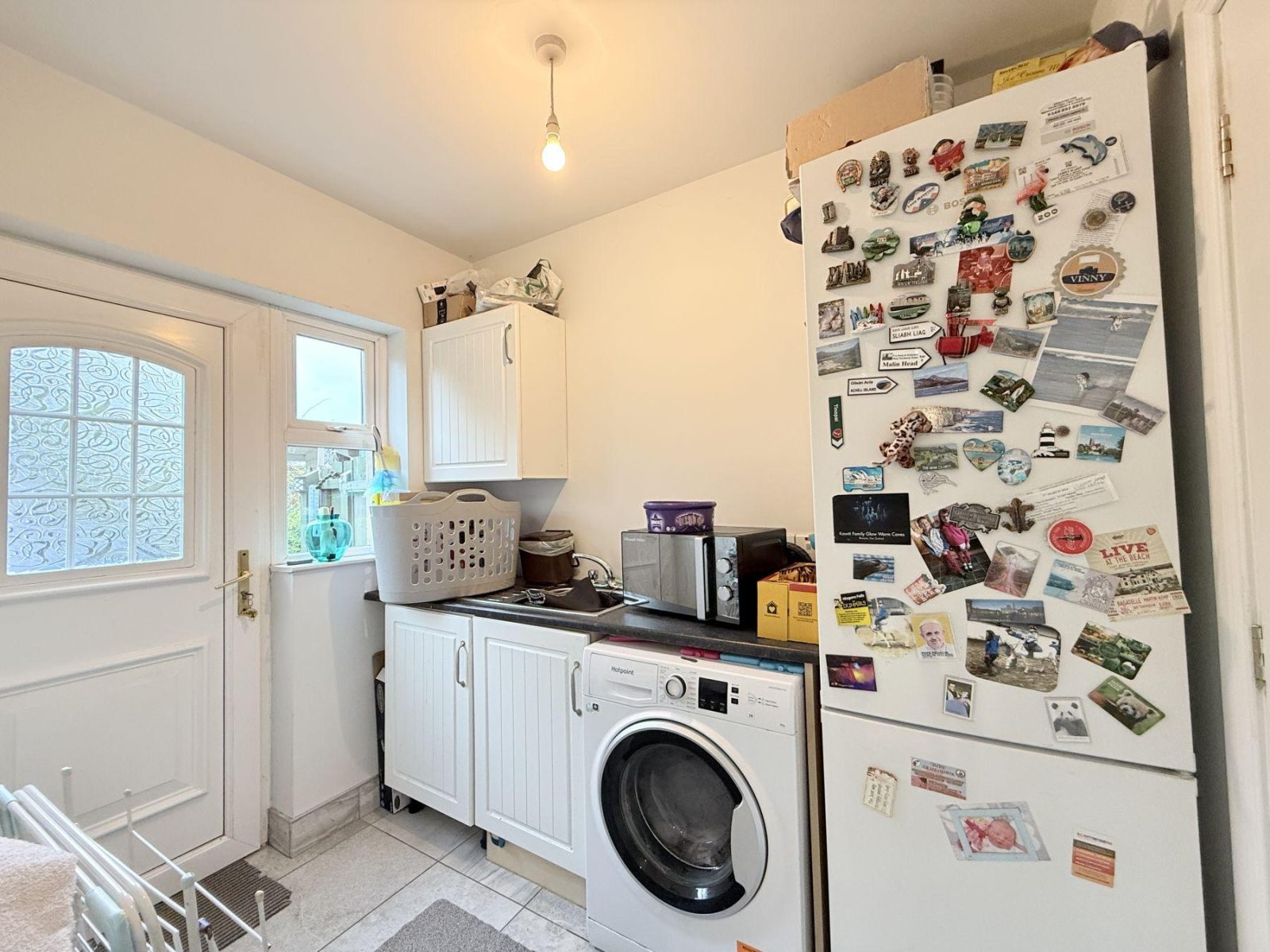 Utility Room: A convenient utility room ideally located off the kitchen, low level units and laminate worktop with services for washer / dryer and fridge / freezer. Tile flooring with rear door access to property rear. Measurements: 2.44m x 1.77m.