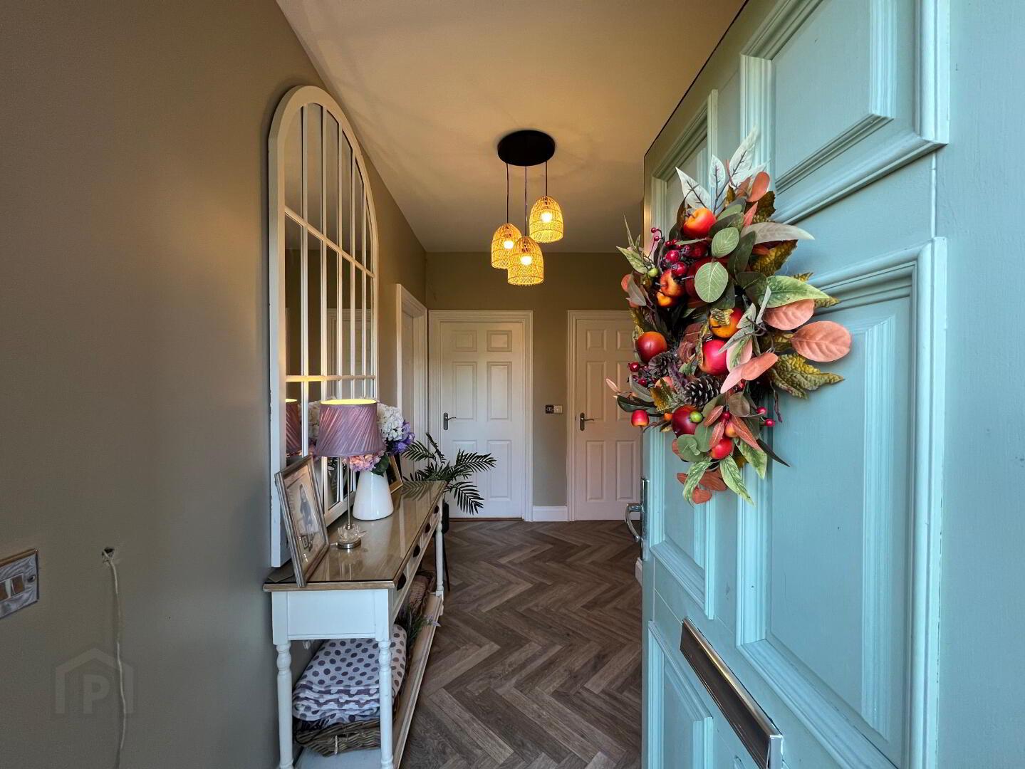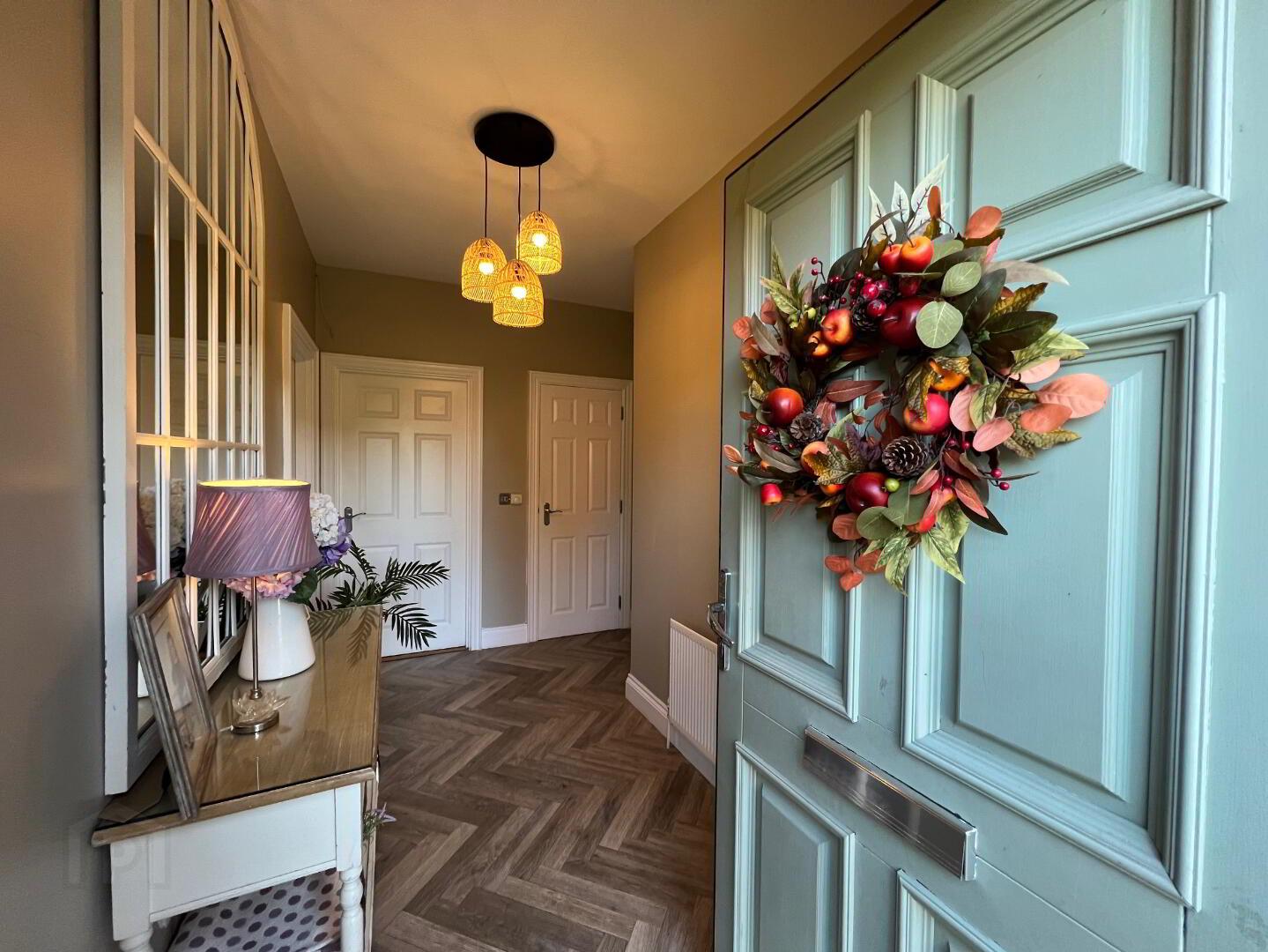 Entrance: A bright welcoming entrance with composite front door; herringbone flooring; leading to a L-Shape corridor with wall panelling. Measurements 3.46m 1.71m