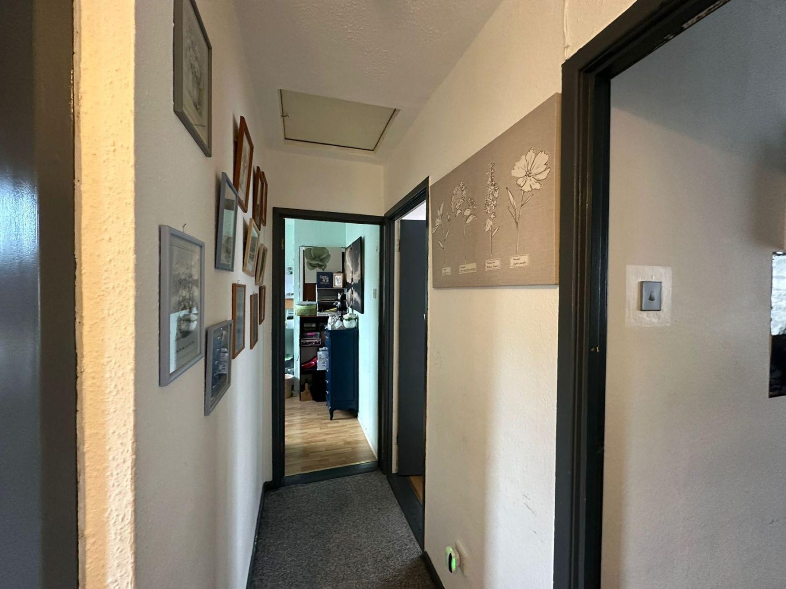 Hall: Entrance through wooden panel door. Laminated flooring with carpet stairwell. Measurements: 2.87m x 2.170m