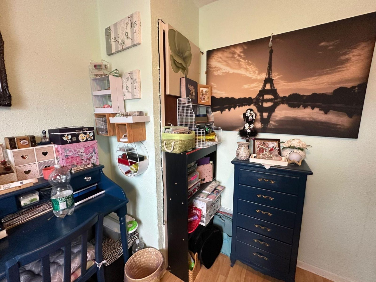 Bedroom 1: Front facing bedroom, built in storage cupboards, laminate flooring, cream painted walls. Measurements: 2.87m x 2.96m