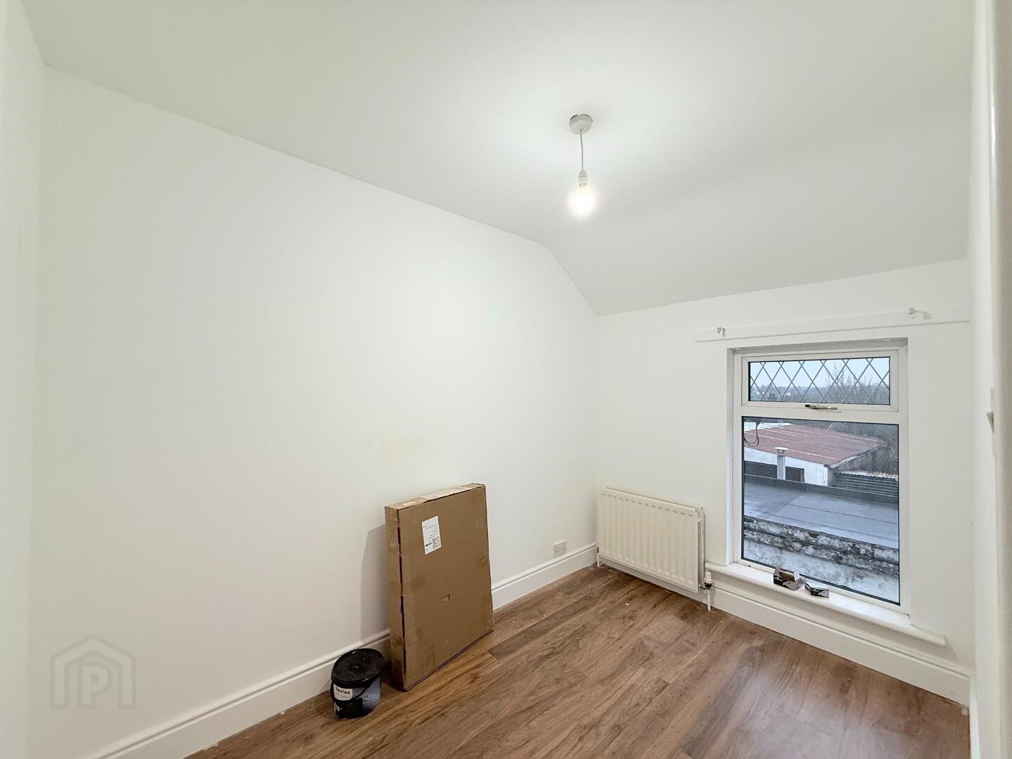 Bedroom 2: Rear-facing bedroom with laminate flooring.