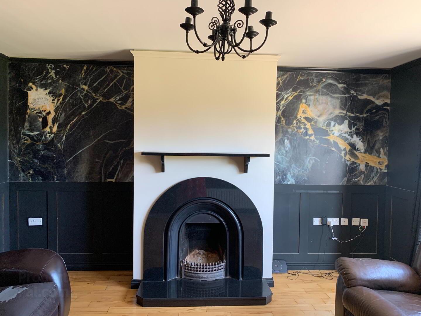 Living Room: A tastefully decorated living room with granite open fireplace with solid wood flooring. Measurements: 4.5m x 4.05m