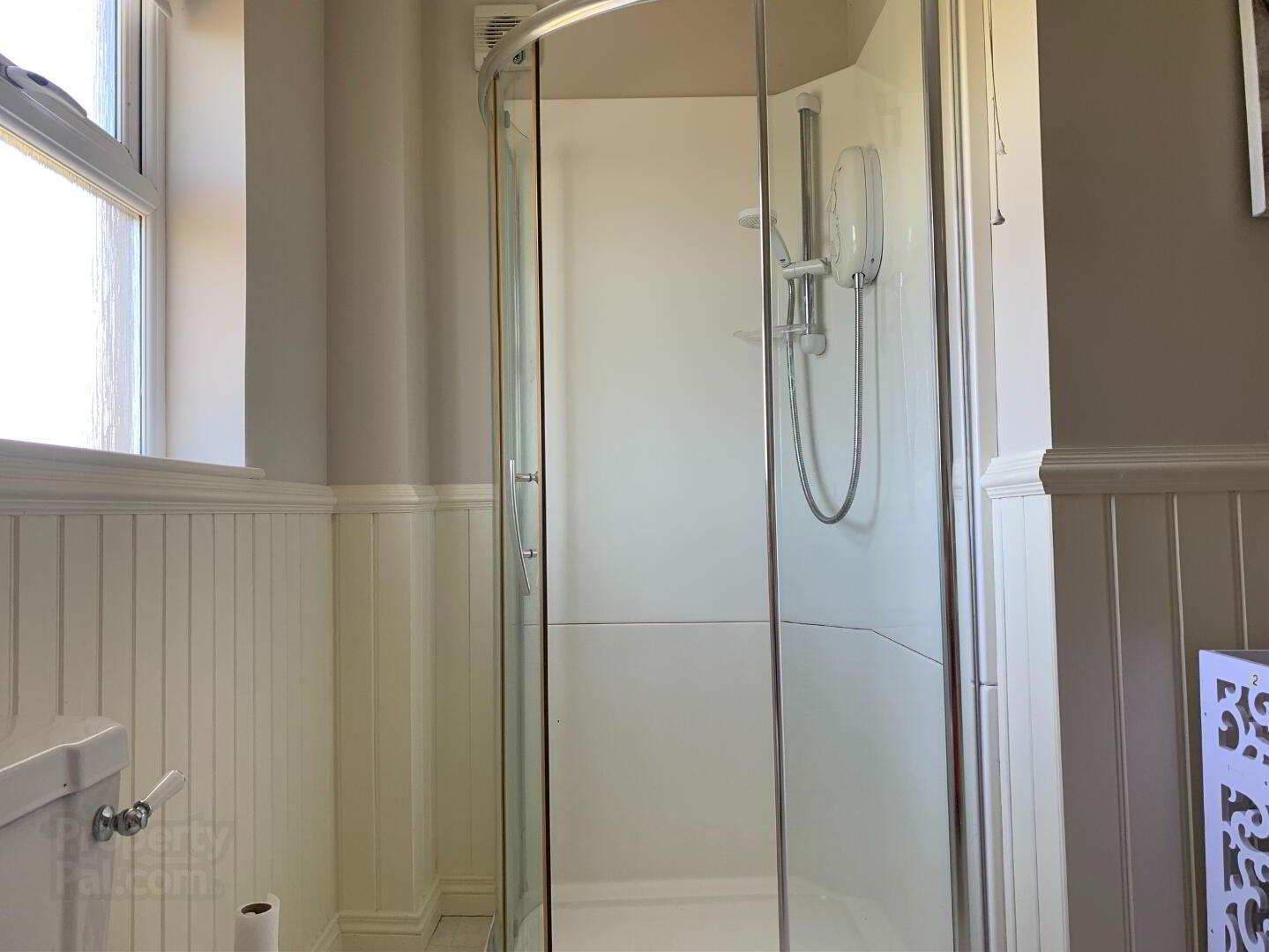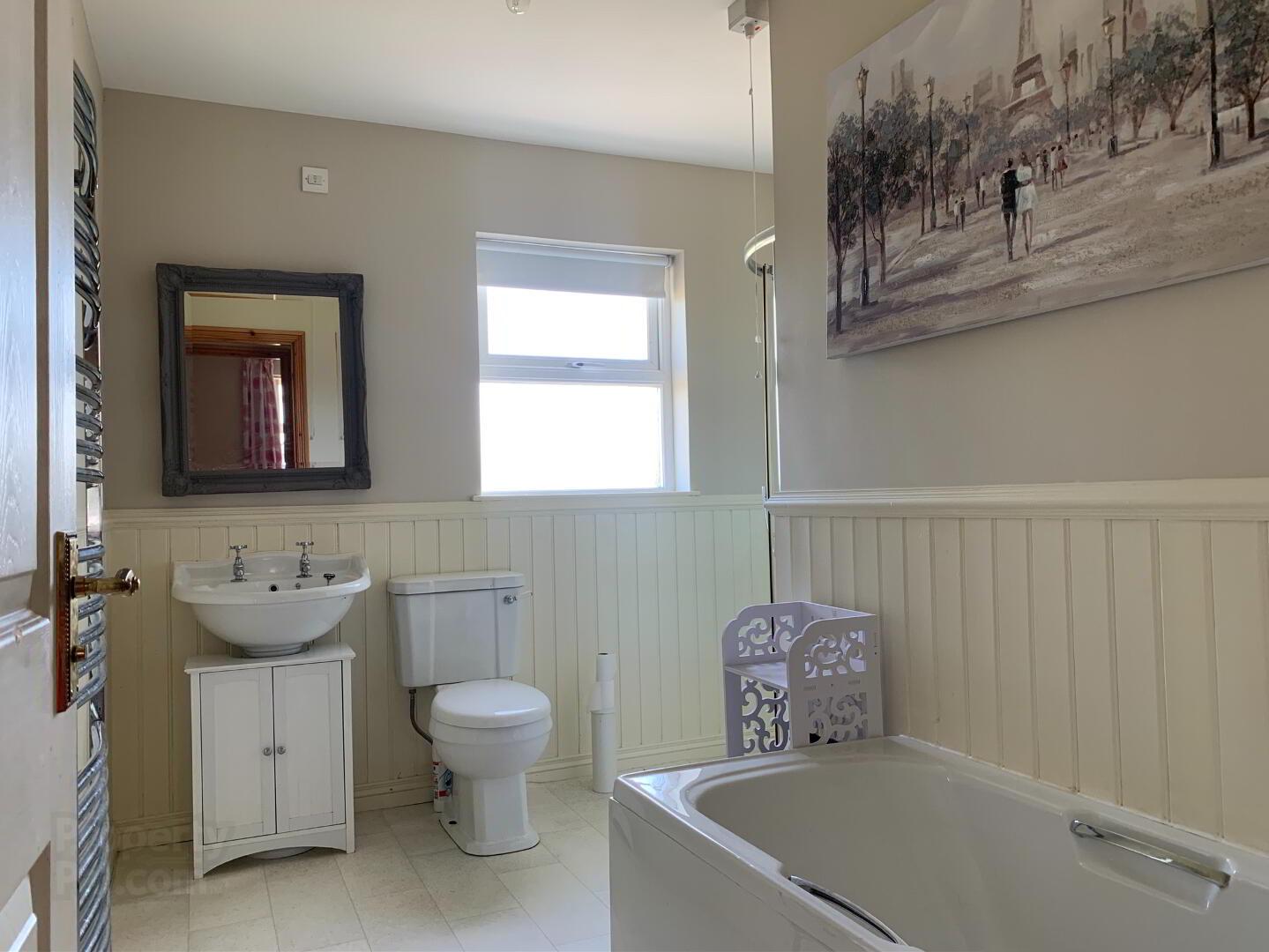 Bathroom: A tastefully cream and white family bathroom. Measurements: 3.46m x 2.85m