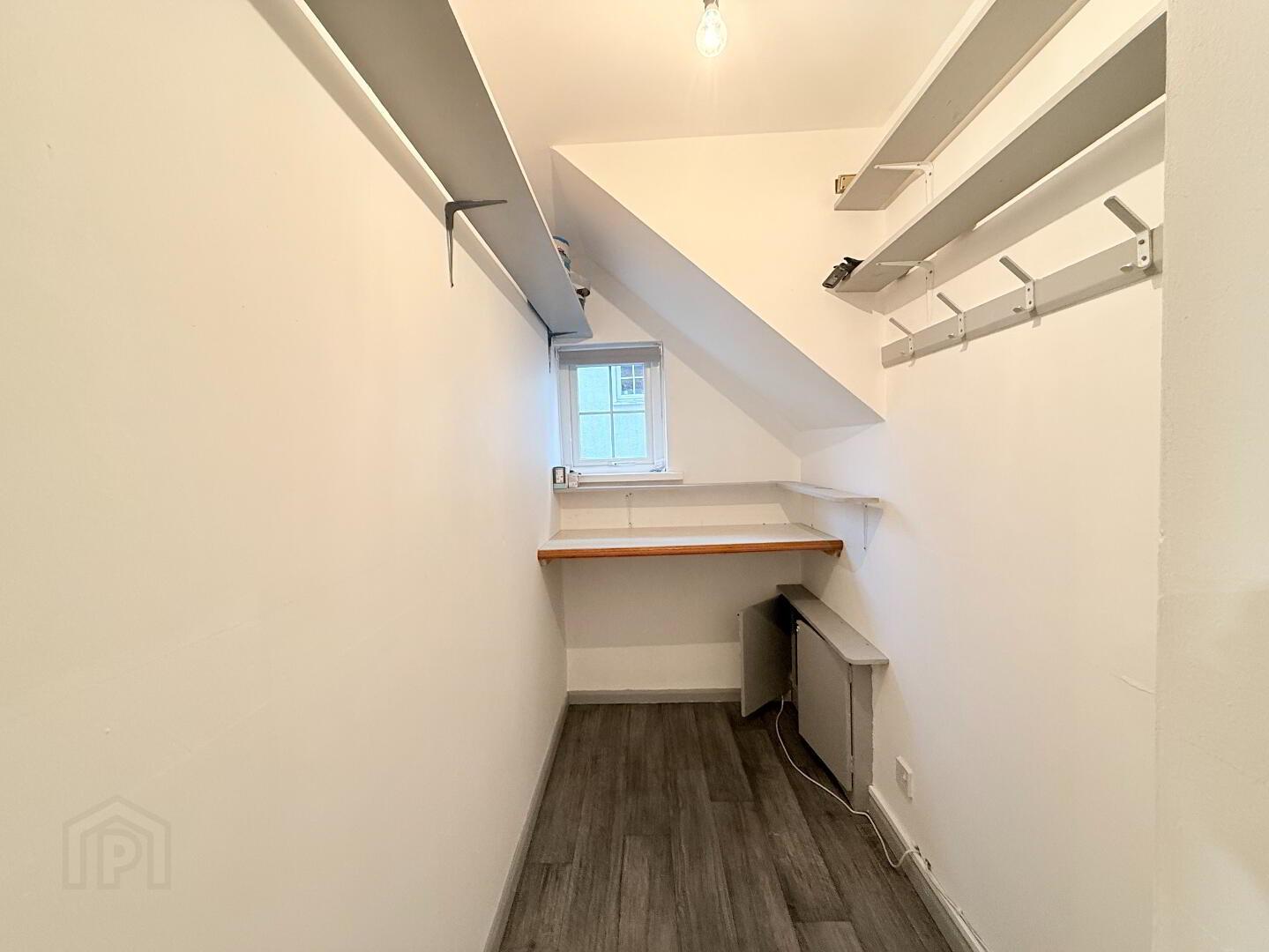 Bright front-facing bedroom with laminate flooring and an internal storage cupboard, also suitable for a home office.
