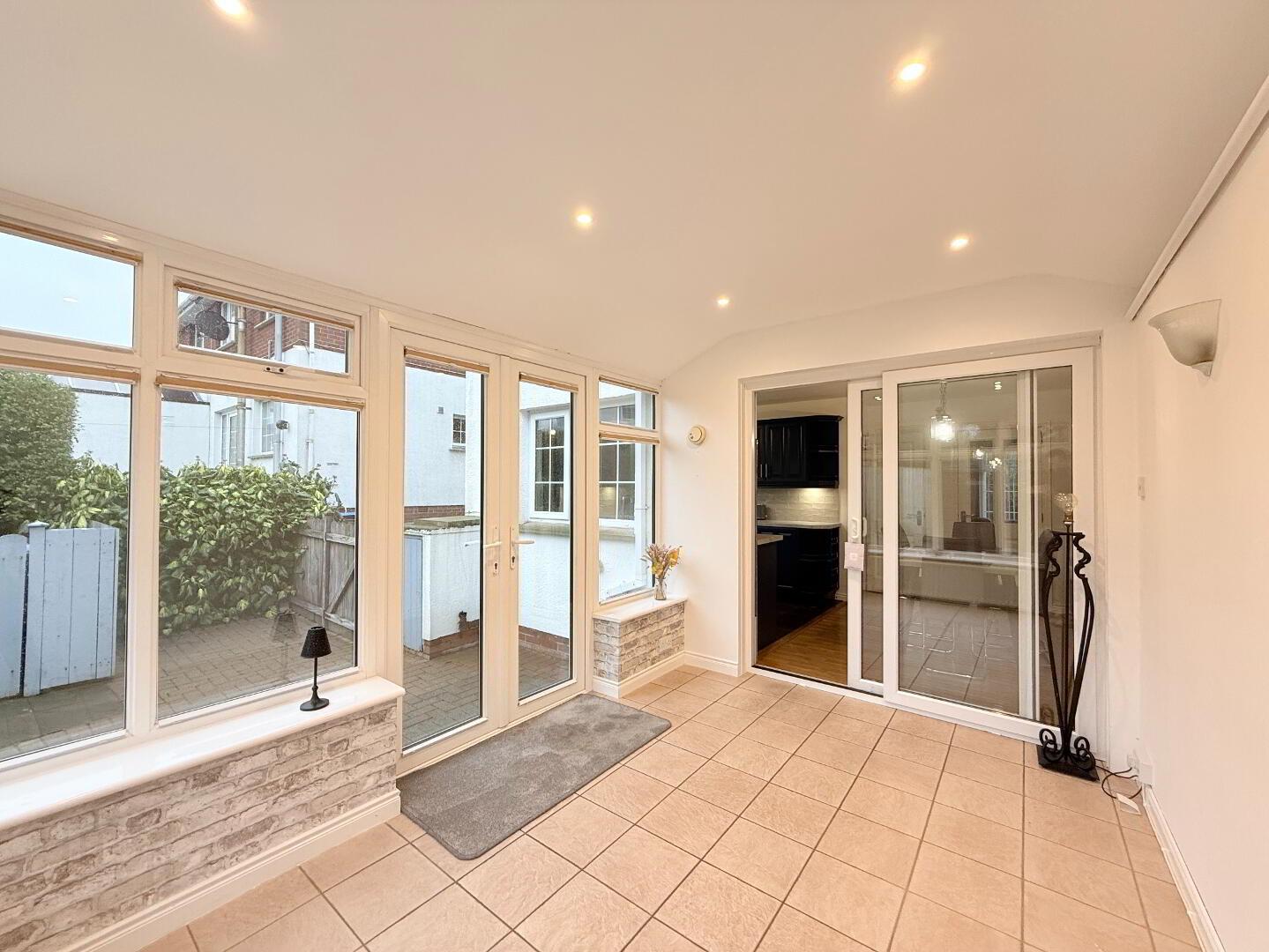 Additional living space accessed via sliding patio doors from the kitchen/dining area, with French doors leading to the rear garden.