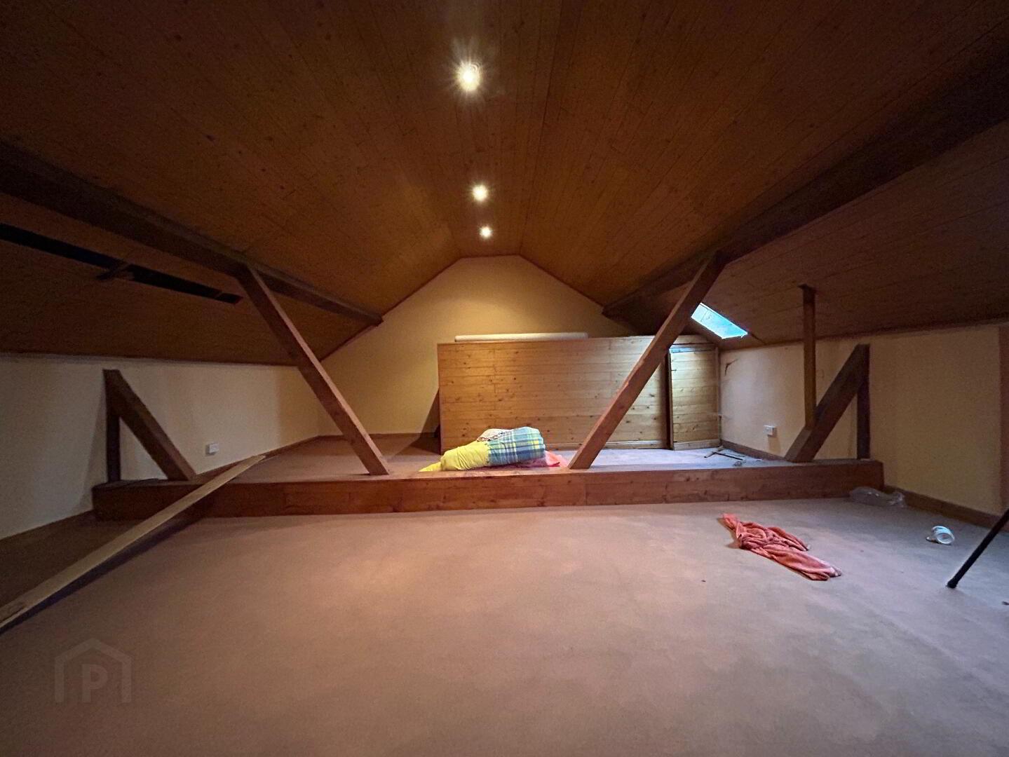 Spacious attic area with wooden flooring. 7.60m x 6m (484 SqFt)