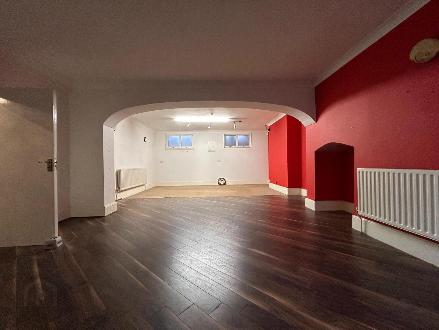 Spacious area with mixture of laminate flooring and carpet with door to the rear of the property. Measurement: 8.75m x 5.23m (492 SqFt)