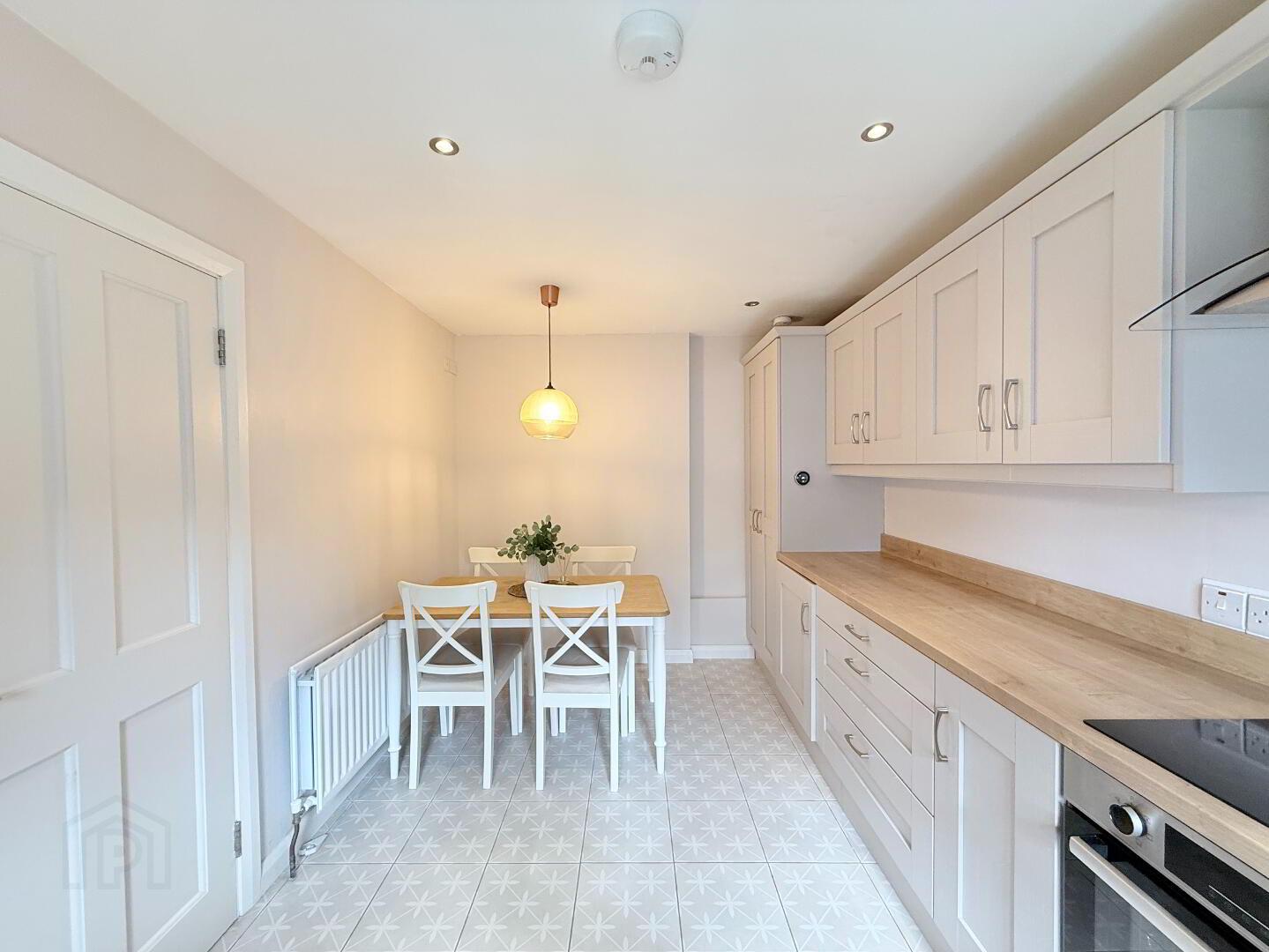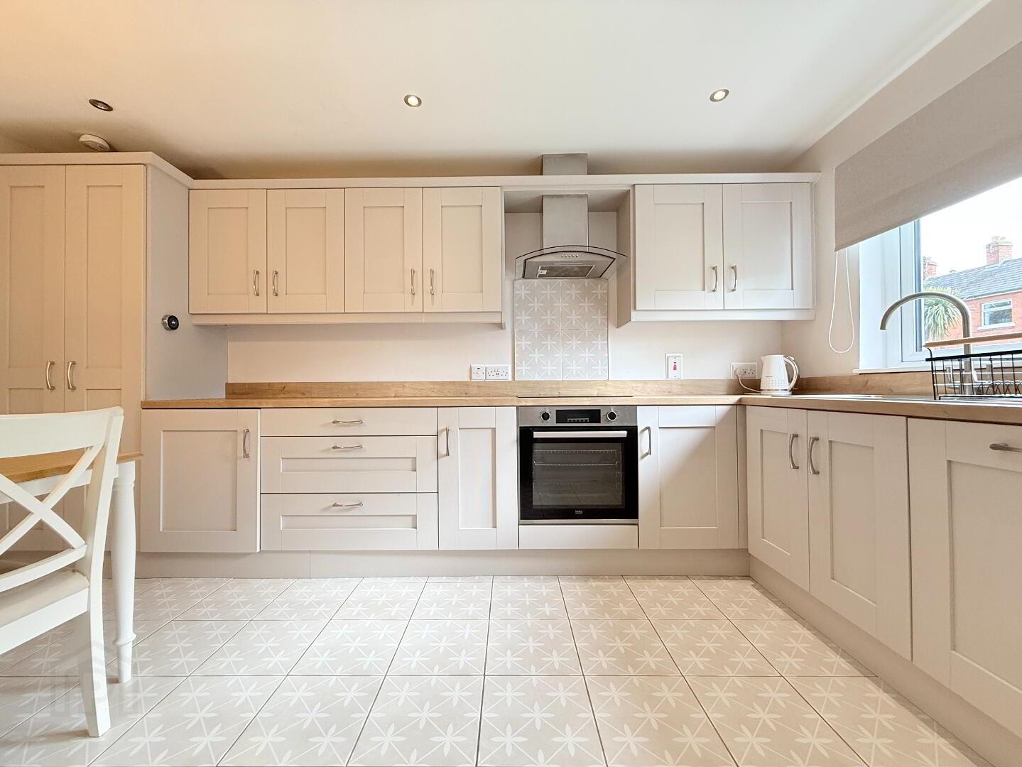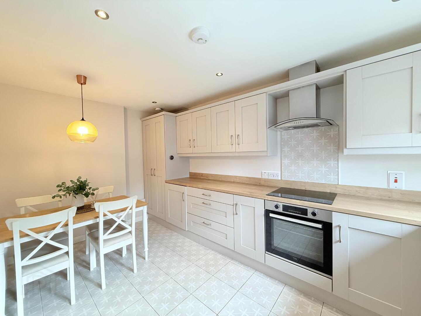 Kitchen / Dining: A high-specification kitchen recently fitted in 2021 with solid low and high rise units and laminate worktop. The kitchen enjoys the following integrated appliances: 4 ring hob, oven, fridge / freezer and combo washer / dryer. Kitchen is complete with modern tile flooring and benefits from spacious dining area. Measurements: 4.48m x 2.66m.