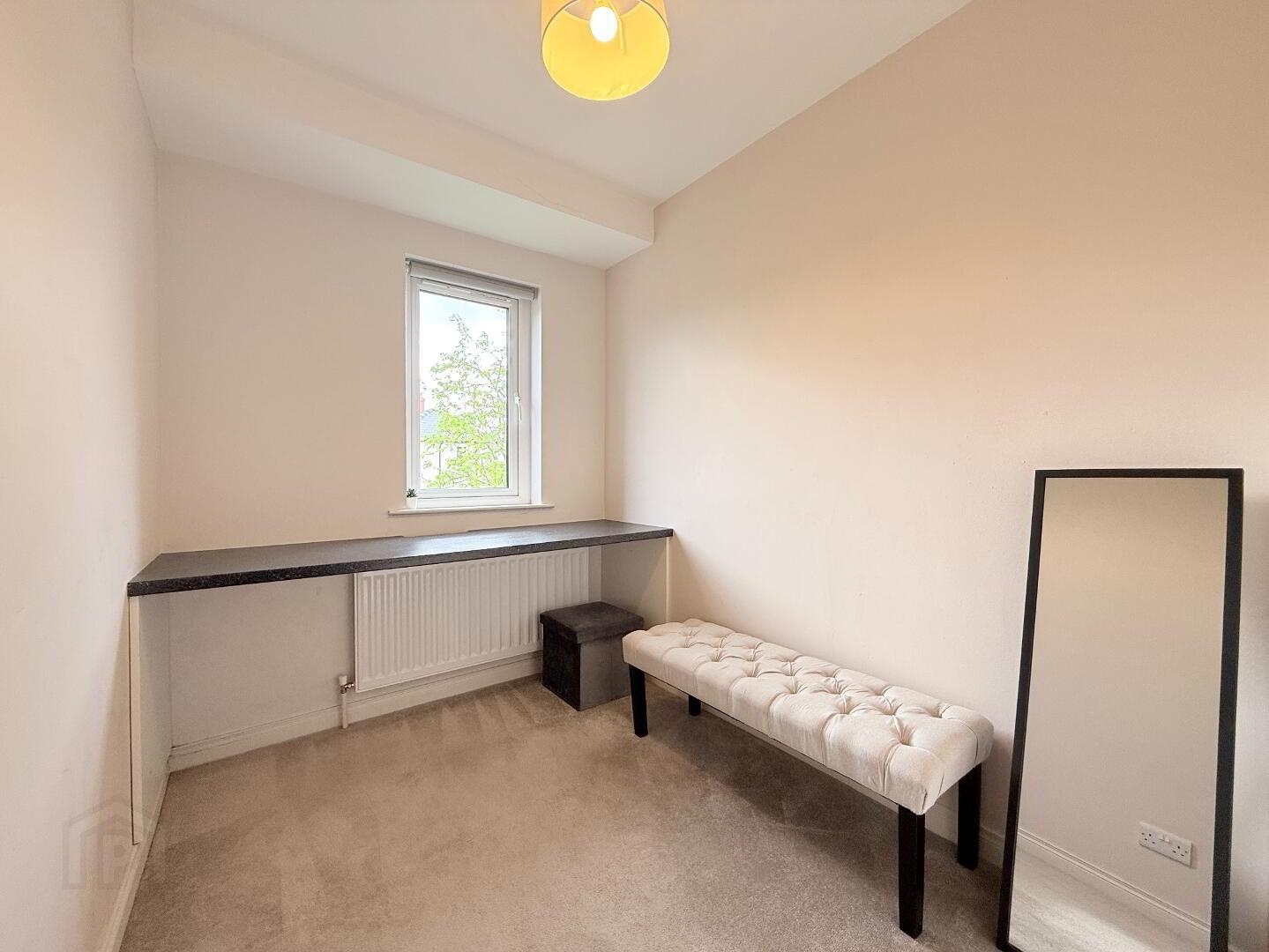 Bedroom 3: A beautiful front facing bedroom, carpet flooring with internal wardrobe. Also suitable for dressing room / home office. Measurements: 3.83m x 1.90m.