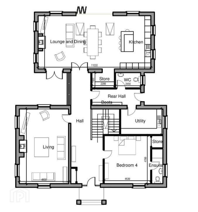 Open Plan Living/Dining Room: A tastefully open plan open plan dining and lving room with access to snug.