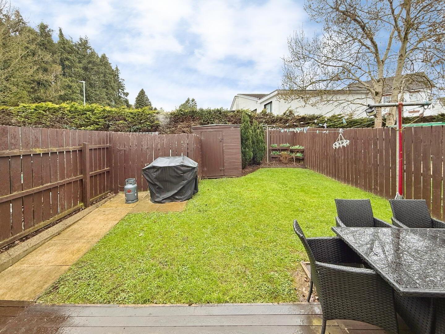 Externally, the property benefits from a tarmac driveway providing parking for two vehicles. To the rear, private walkway with gate and boundary fencing encloses a private garden, complete with lawn and low maintenance paved patio area — perfect for outdoor dining and relaxation. Garden shed is also included in sale.