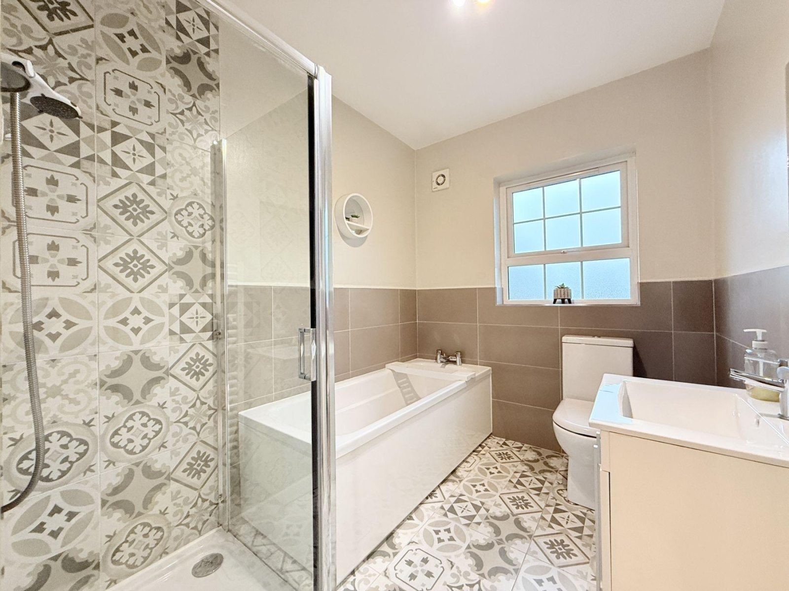 Bathroom: A four-piece family bathroom with electric shower, bath and vanity unit with high-quality sanitary ware. Measurements: 2.55m x 1.98m.