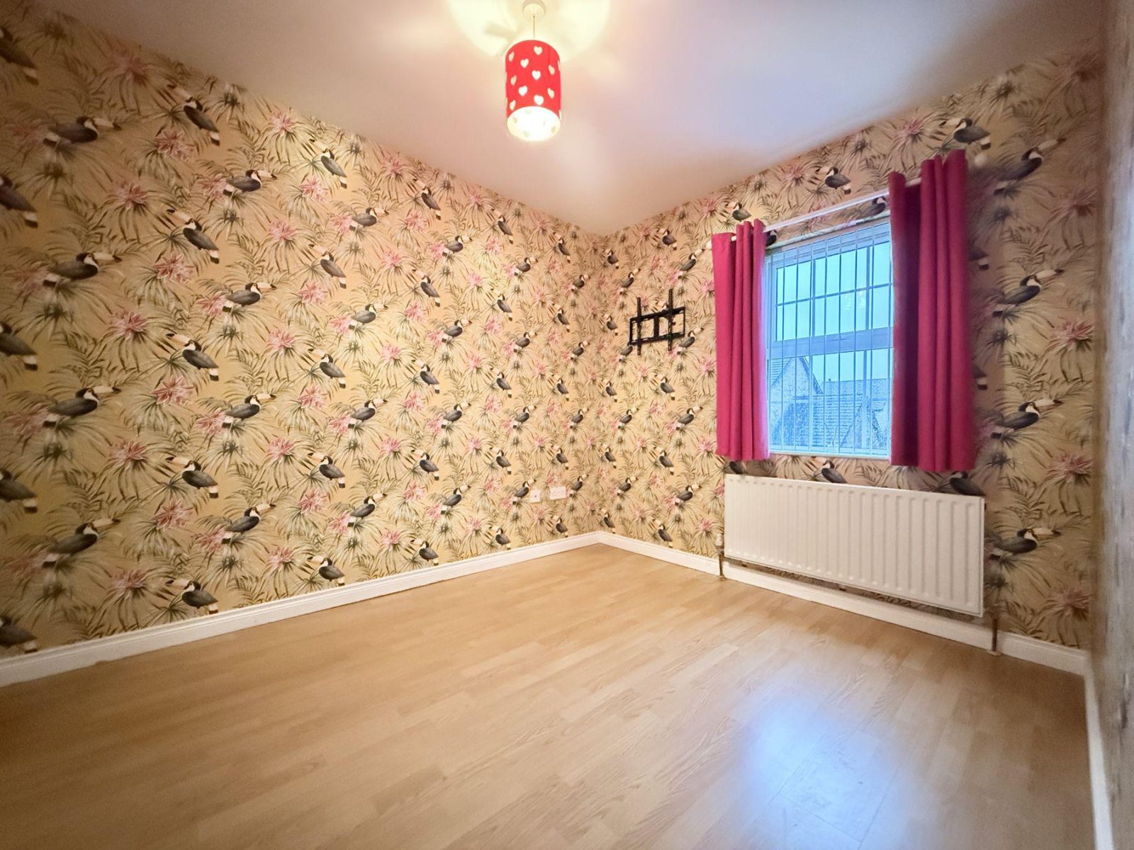 Bedroom 3: A front facing bedroom with laminate flooring. Measurements: 2m x 2m.