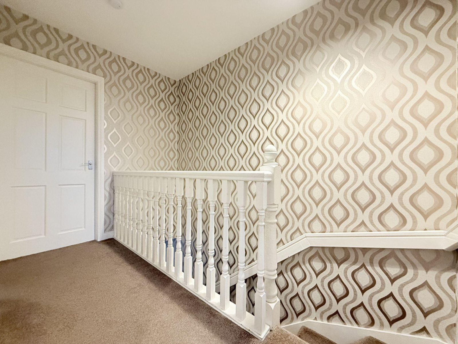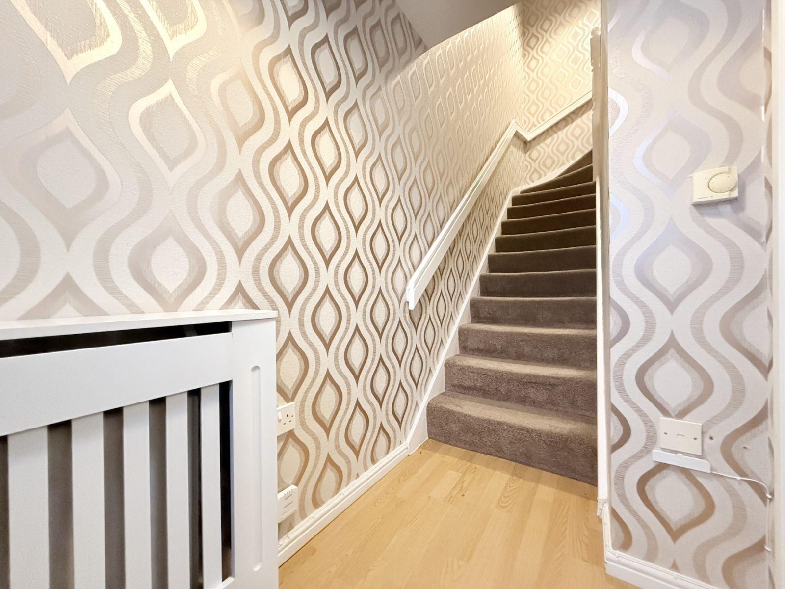 Entrance Hallway: Welcoming entrance with laminate flooring leading to carpet stairwell.