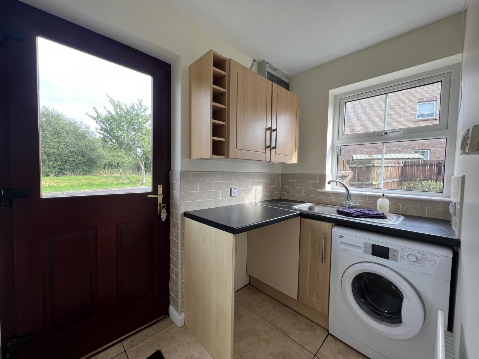 Utility: Cream tiled flooring, includes high rise units and Beko washing machine. Measurements: 2.36m x 1.48m
