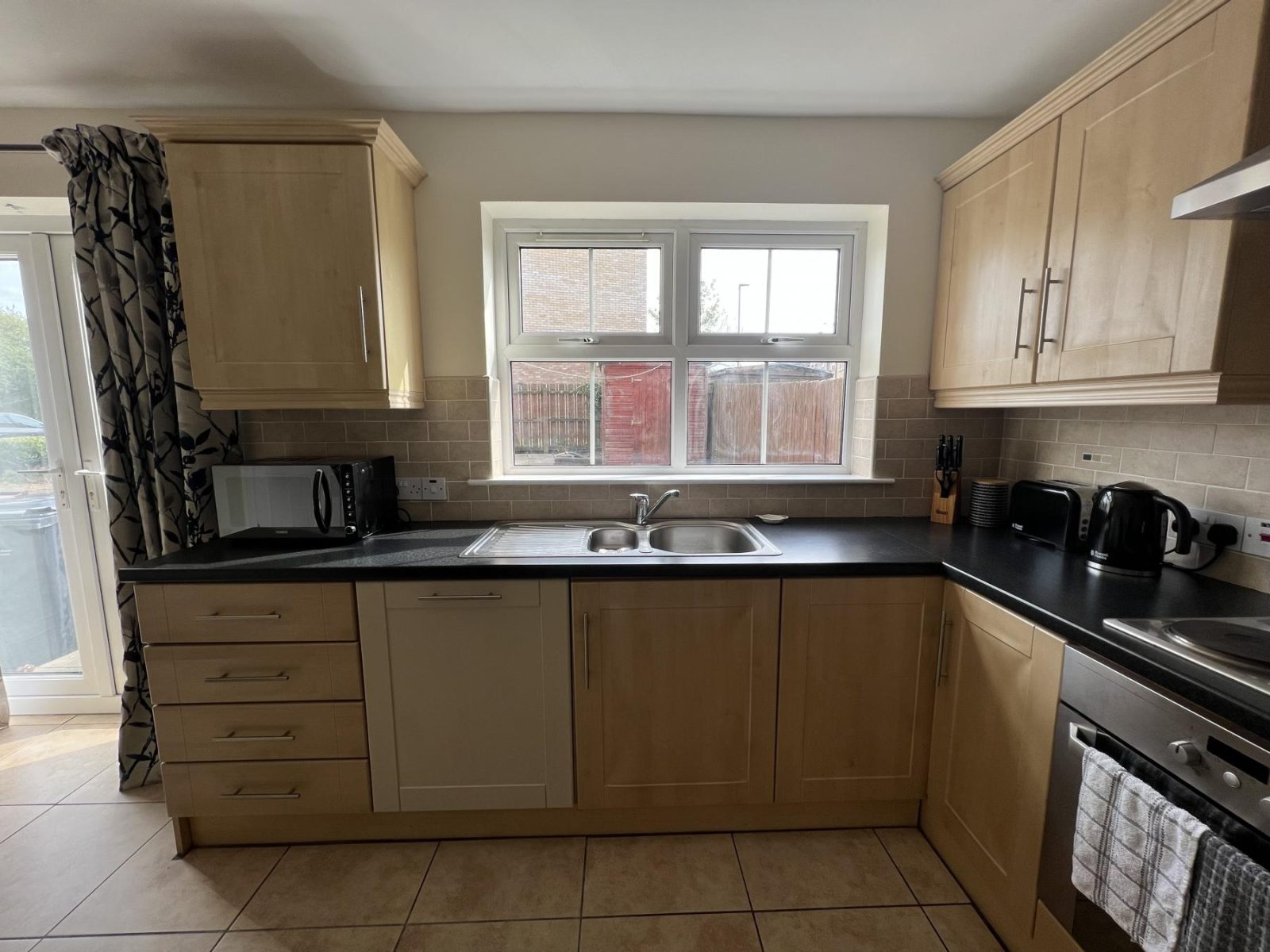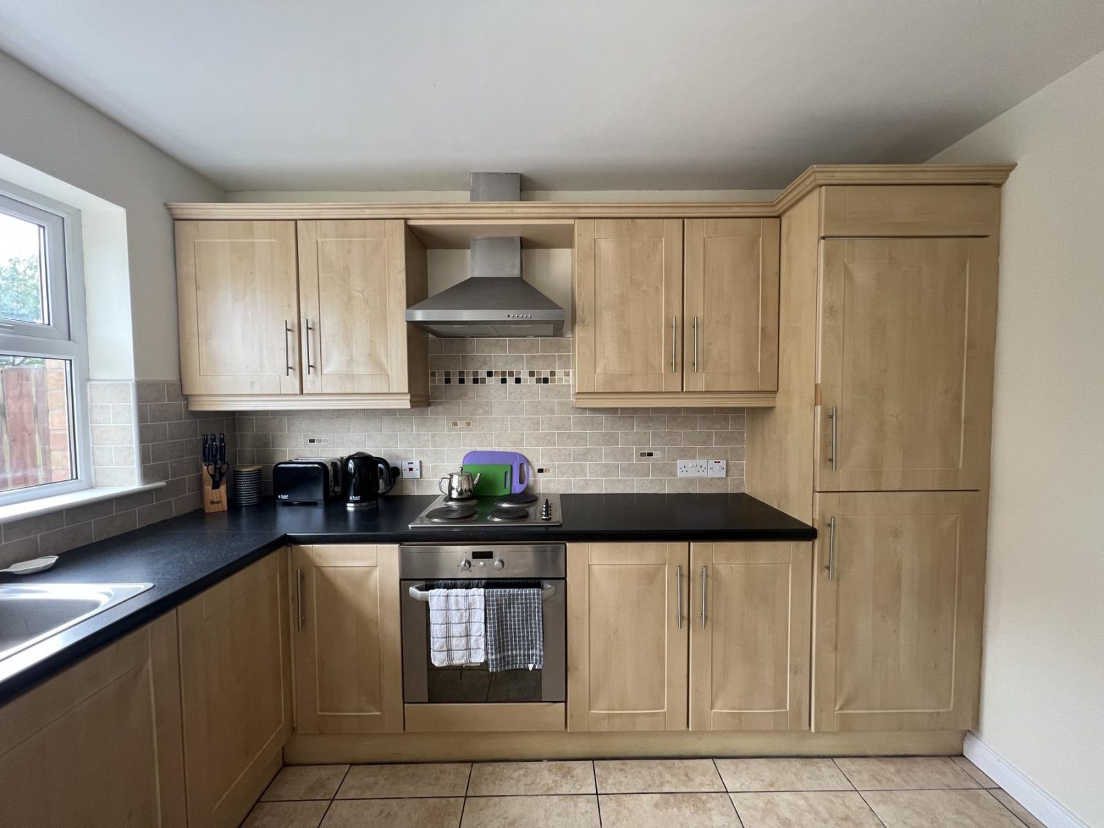 Kitchen/Dining Area: A well-presented kitchen with low and high rise units, includes integrated dish washer, fridge / freezer and oven. Measurements: 3.16m x 4.96m