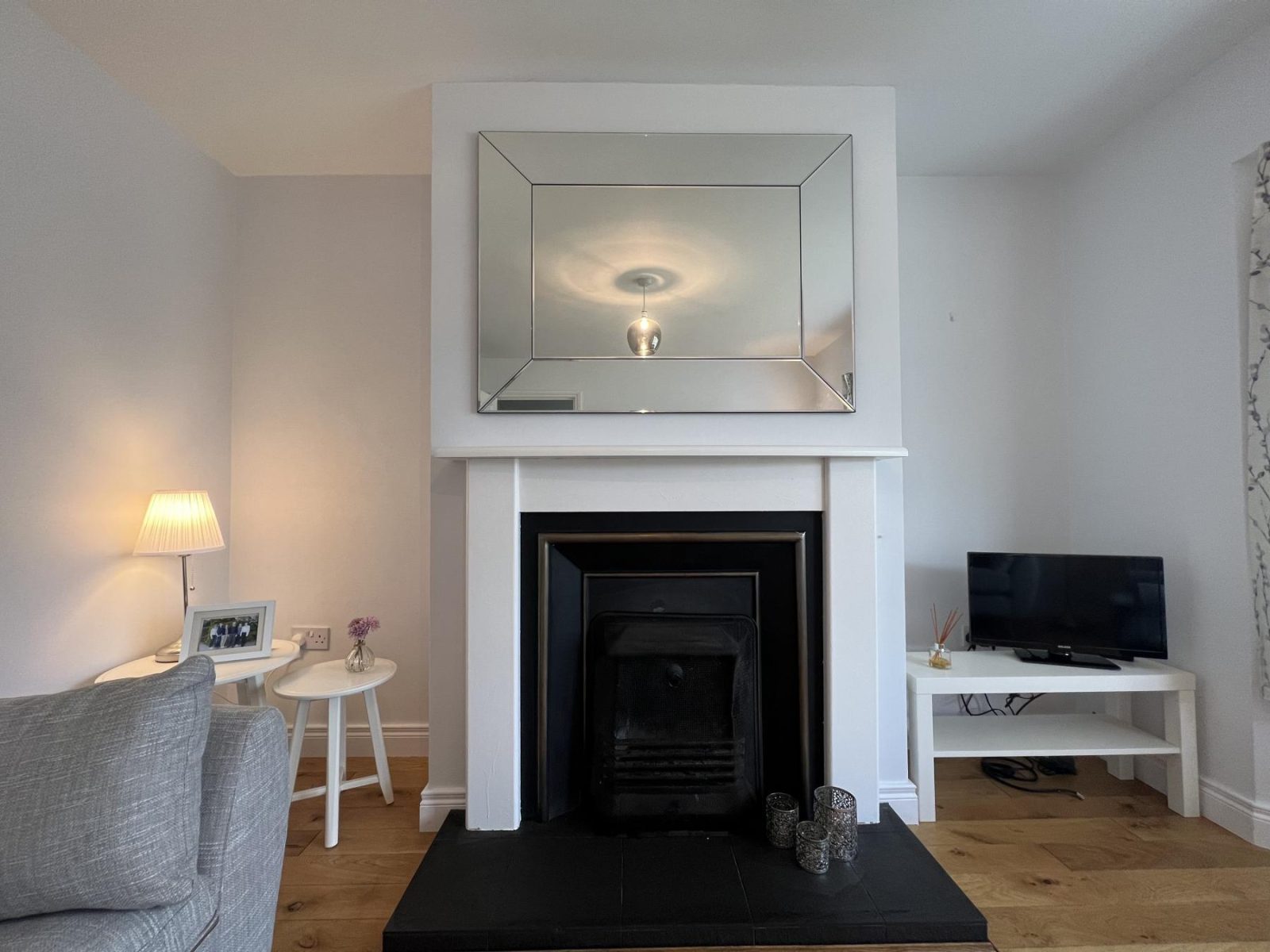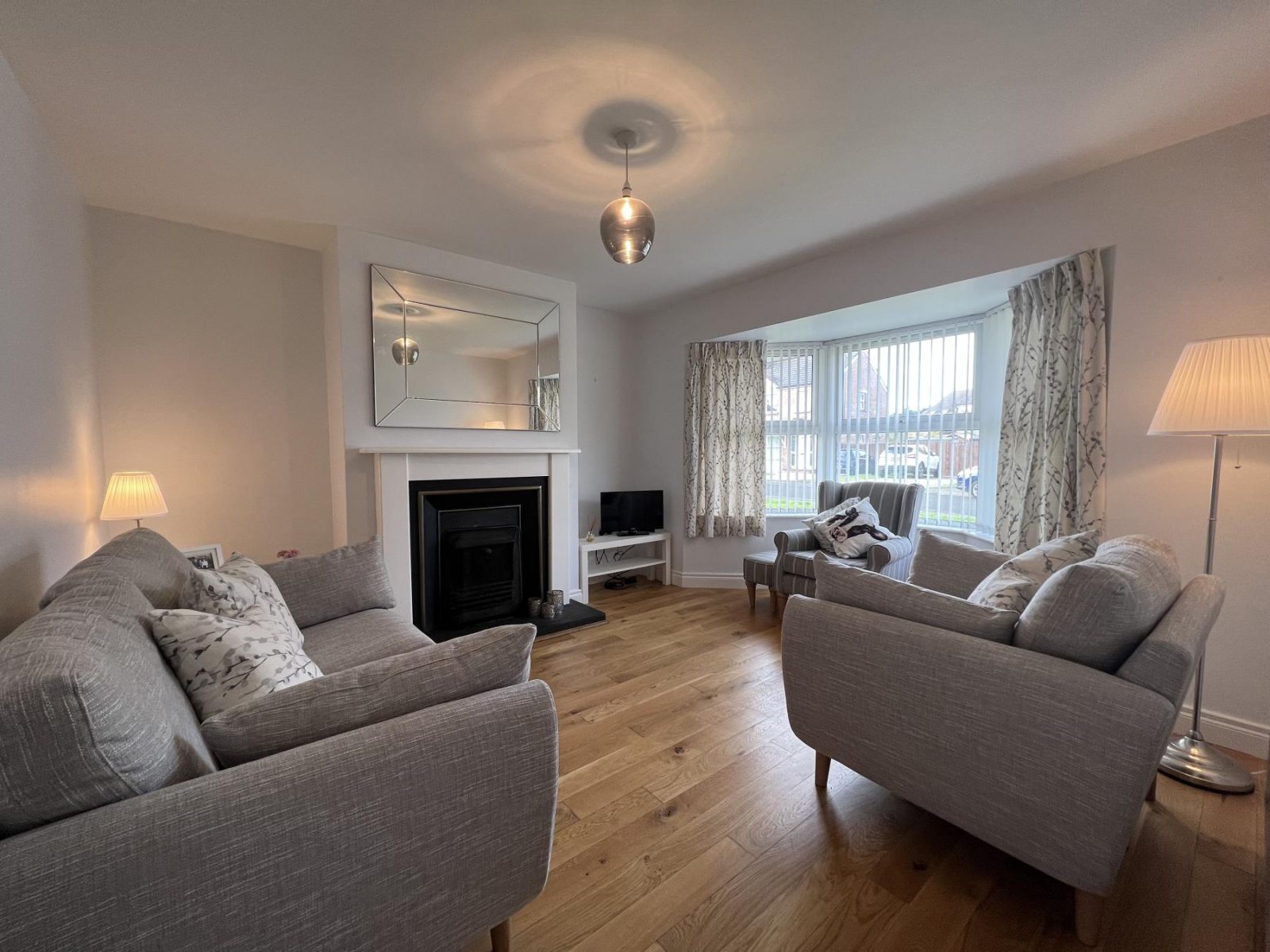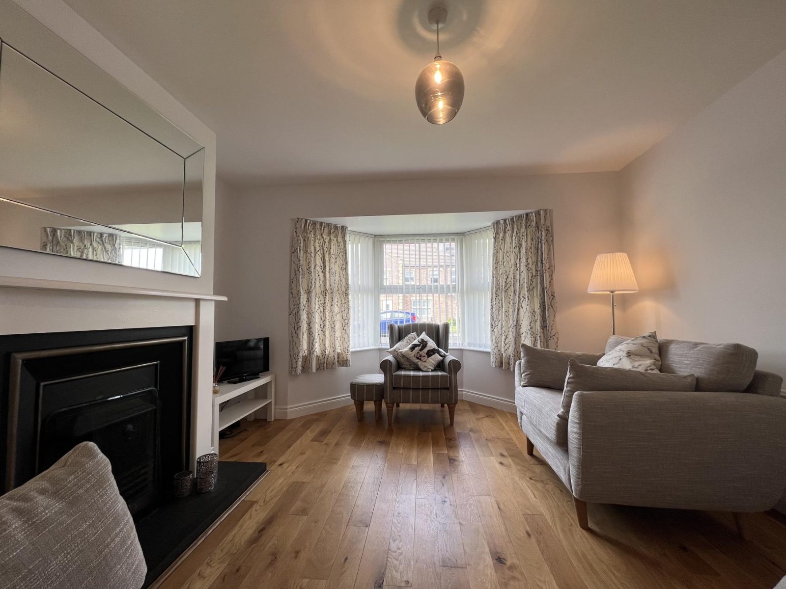 Reception Room: A bright spacious living room with open fire, luxury wooden flooring and bay window to the front of the property. Measurements: 3.82m x 4.44m