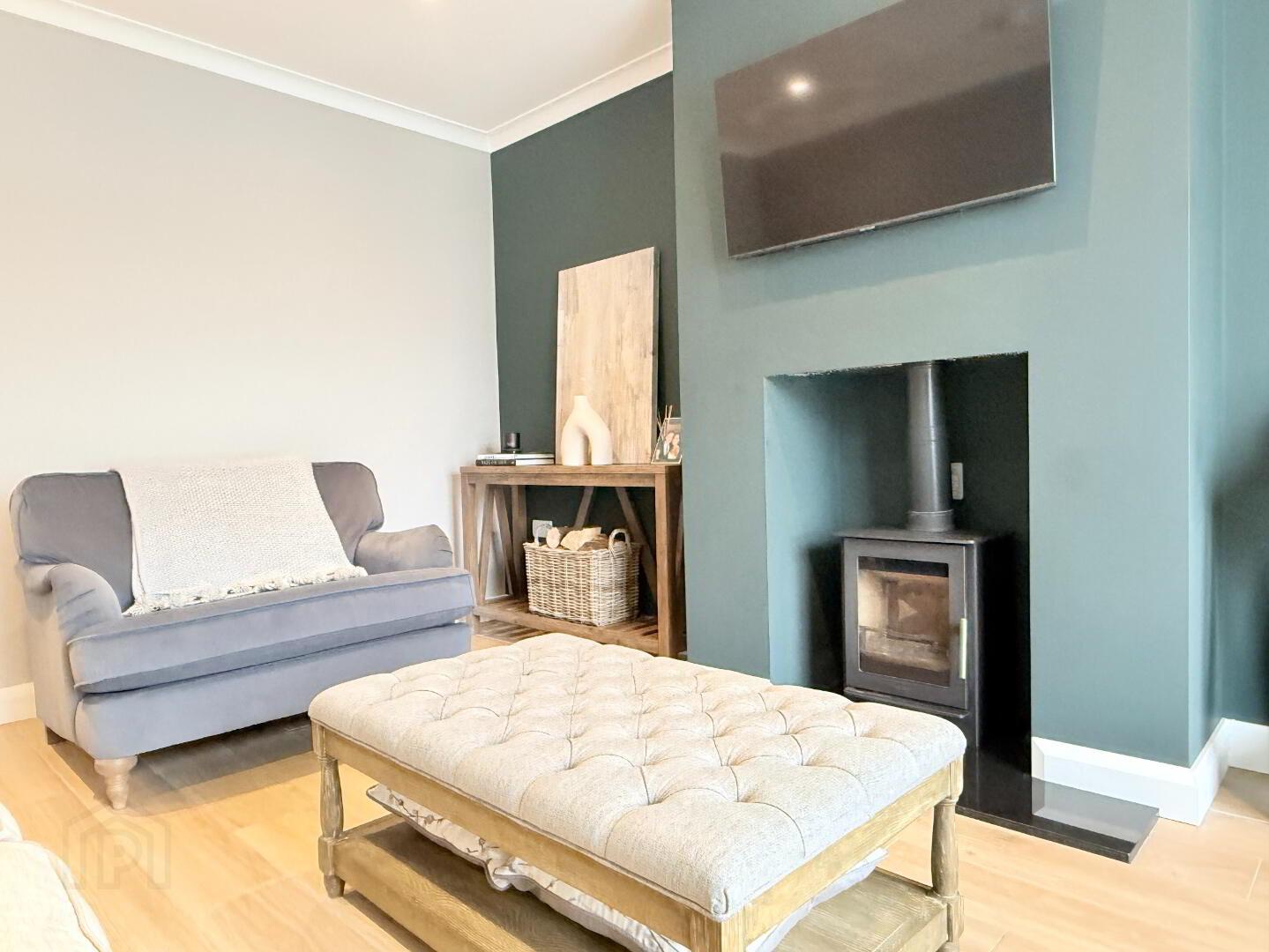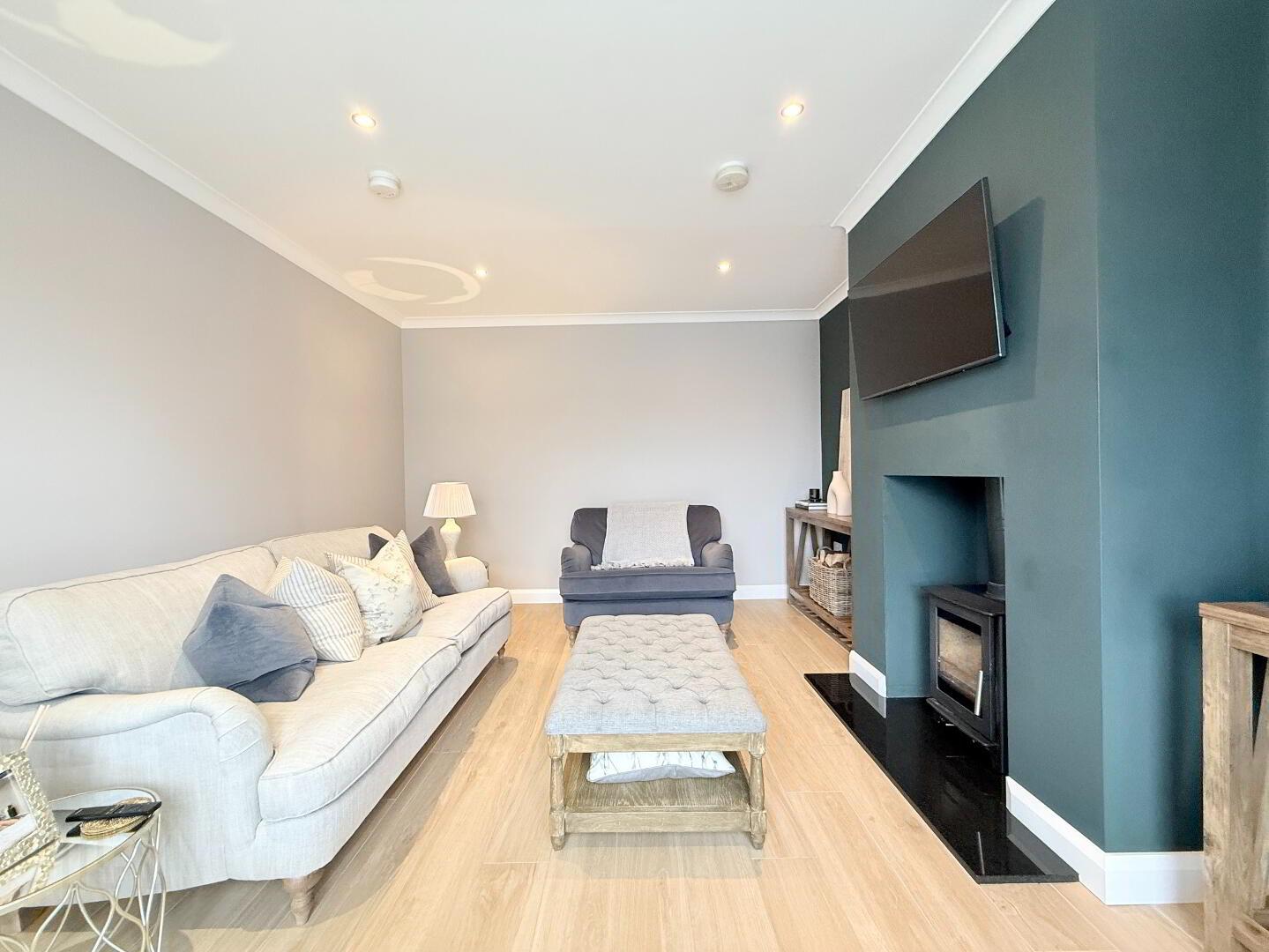 Internally, the home boasts three spacious double bedrooms, a large and welcoming reception room featuring a wood-burning stove, and a bright, open-plan kitchen/dining area ideal for both everyday living and entertaining. Additional accommodation includes a convenient utility room, ground-floor W/C, and a stylish four-piece family bathroom.