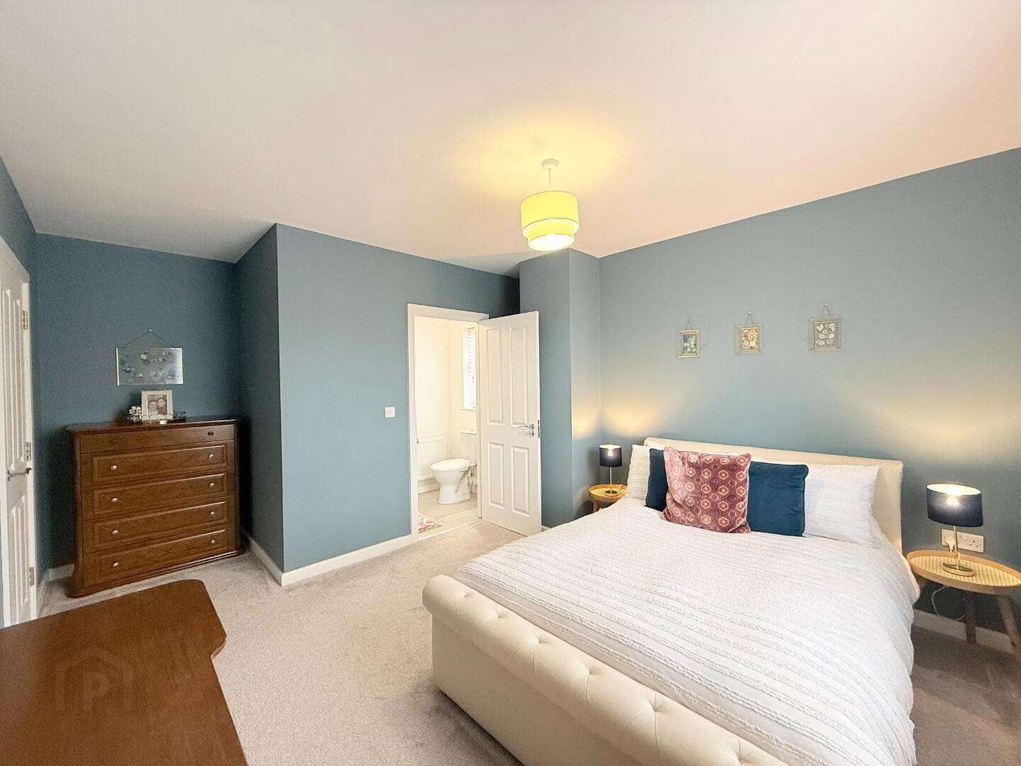 Bright, front-facing double bedroom with luxurious carpet flooring and en-suite facilities.