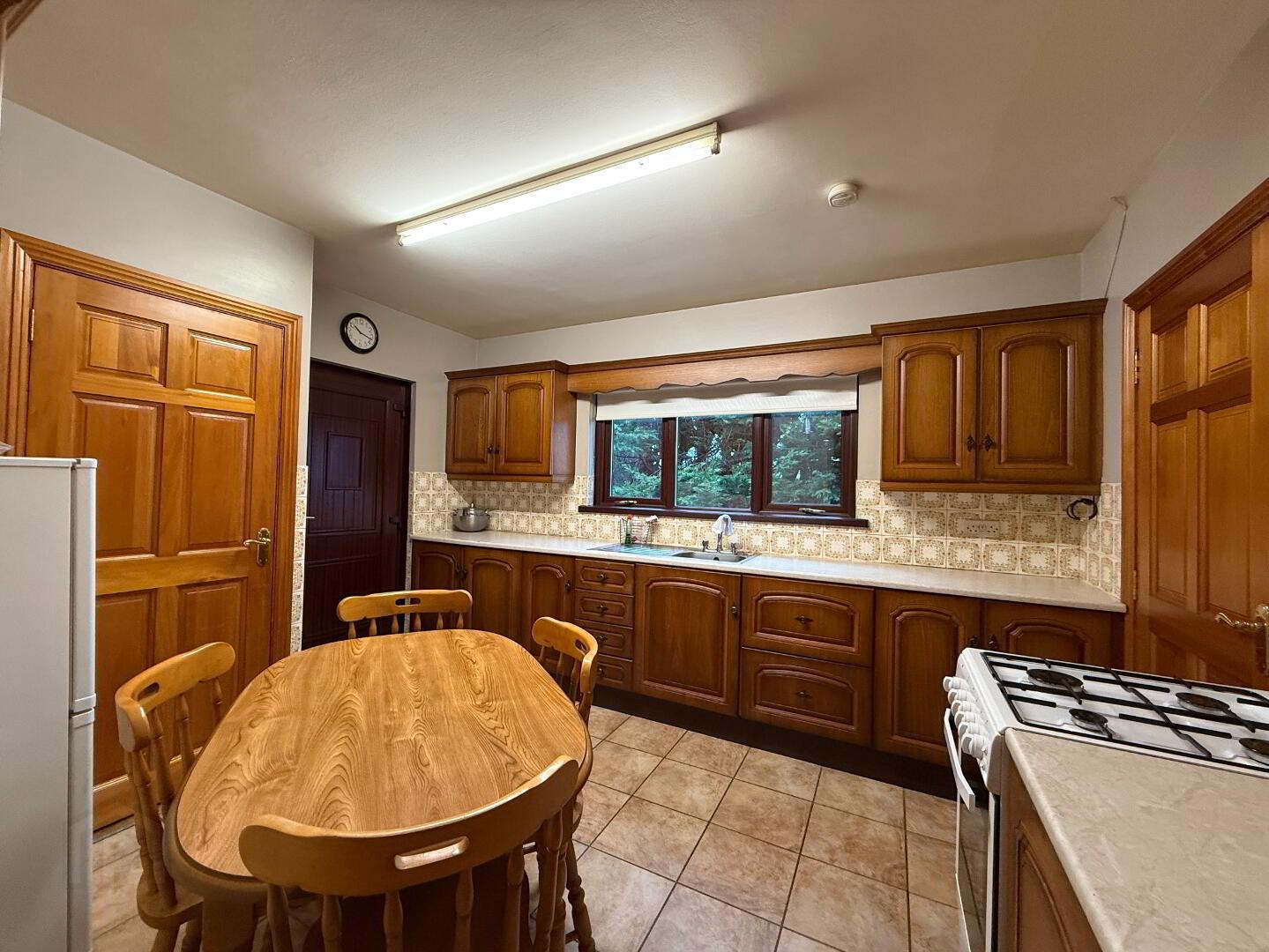 Kitchen / Dining: Open plan kitchen / dining area complete with tile flooring, solid wooden low- and high-rise units, laminate worktop with services for appliances.