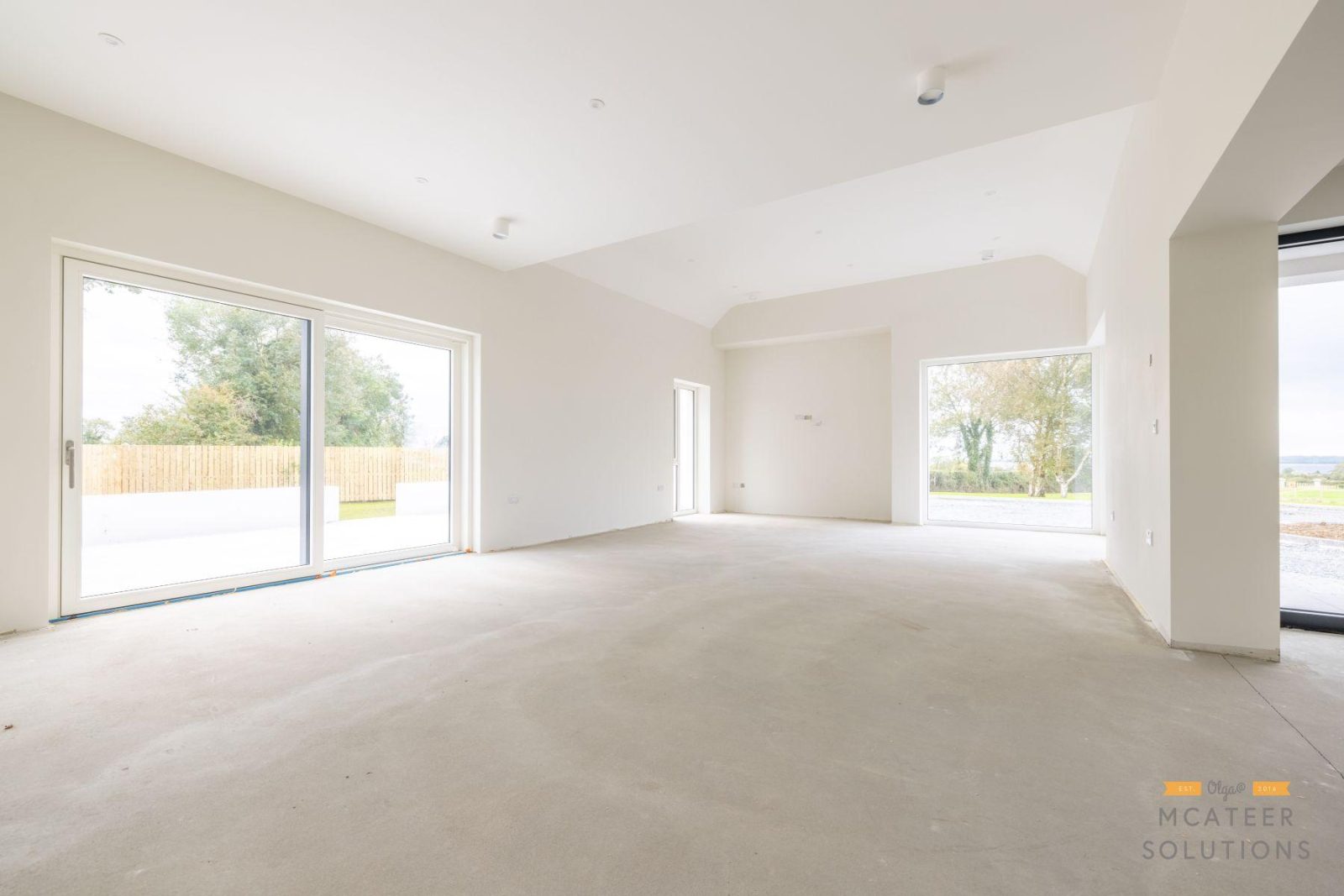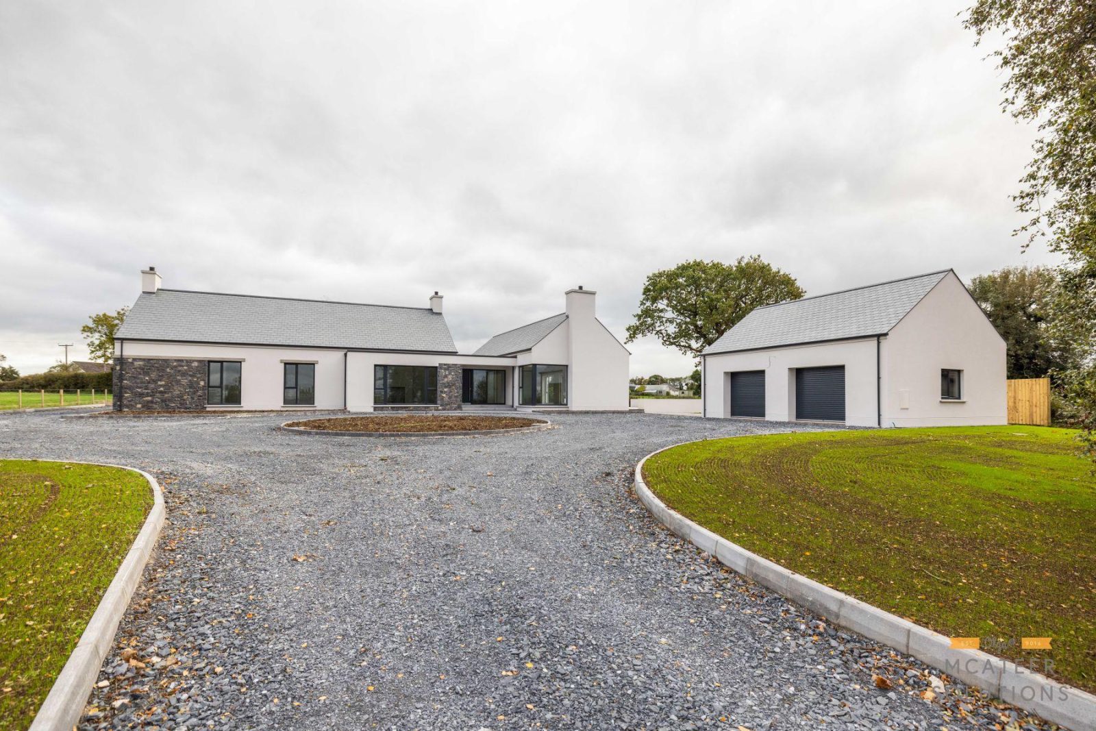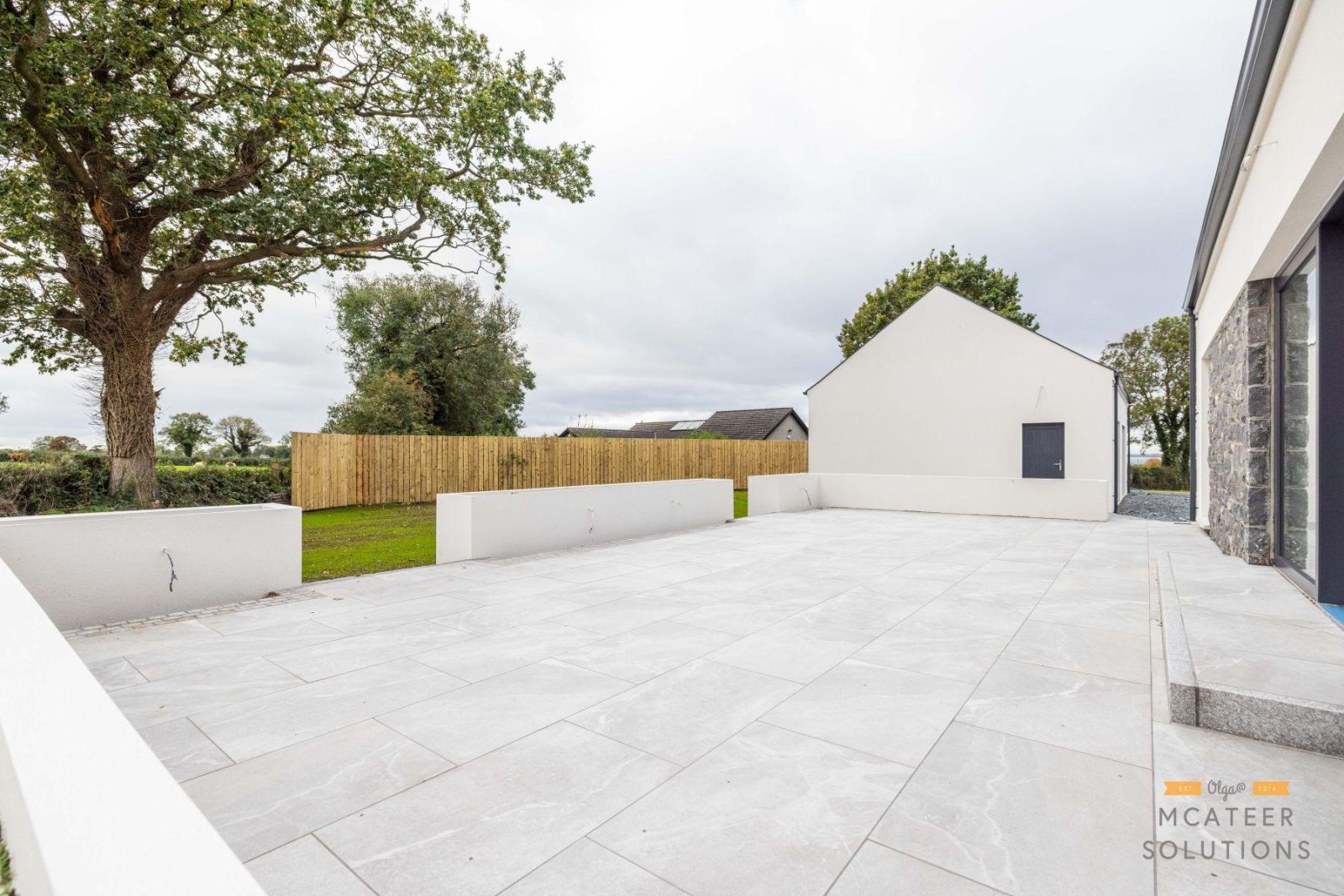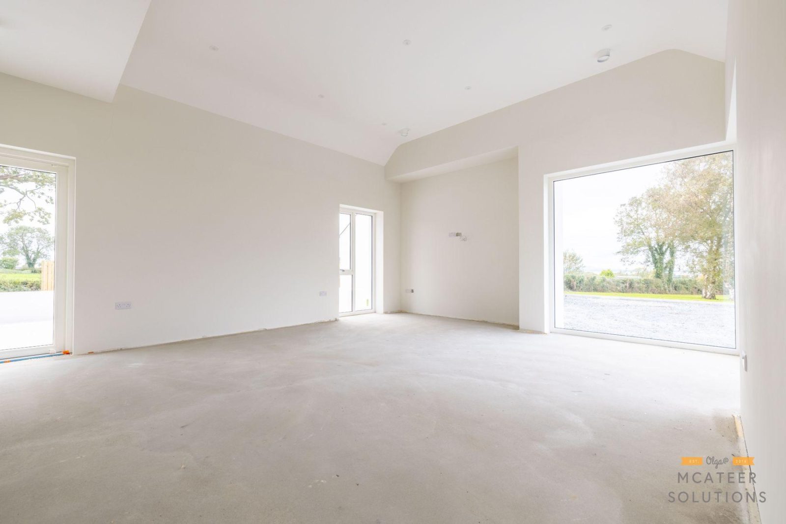 Boasting road frontage with private access via entrance pillars from the Dungonnell Road, this property benefits from a sweeping driveway at approx. 170metres leading to this premium new build home and large detached double garage at an (additional 624 Sq Ft). The property also benefits from generous gardens to the front, side and rear with a private patio area beyond sliding patio doors from the open plan living area. Finished to an exceptionally high standard turnkey finish, the main property comprises of four large bedrooms, two of which have en-suite shower rooms with the ground-floor master bedroom also boasting a large walk-in dressing room. A bright and spacious hallway provides an impressive entrance, in addition to the main living room the property comprises of a large open plan kitchen / dining and family living area with large sliding patio doors providing access to property exterior. A convenient pantry area is located within the kitchen, spacious utility, two large family bathrooms and rear hall with ground floor W/C.