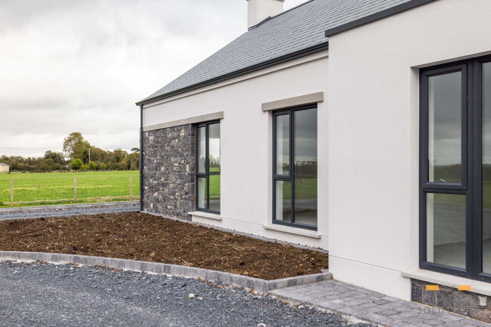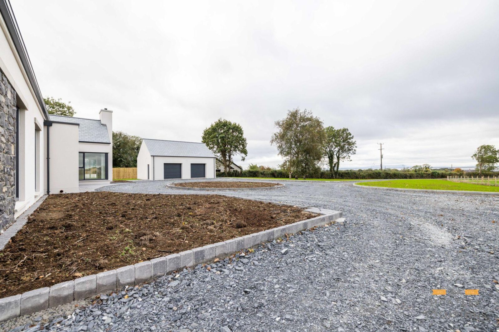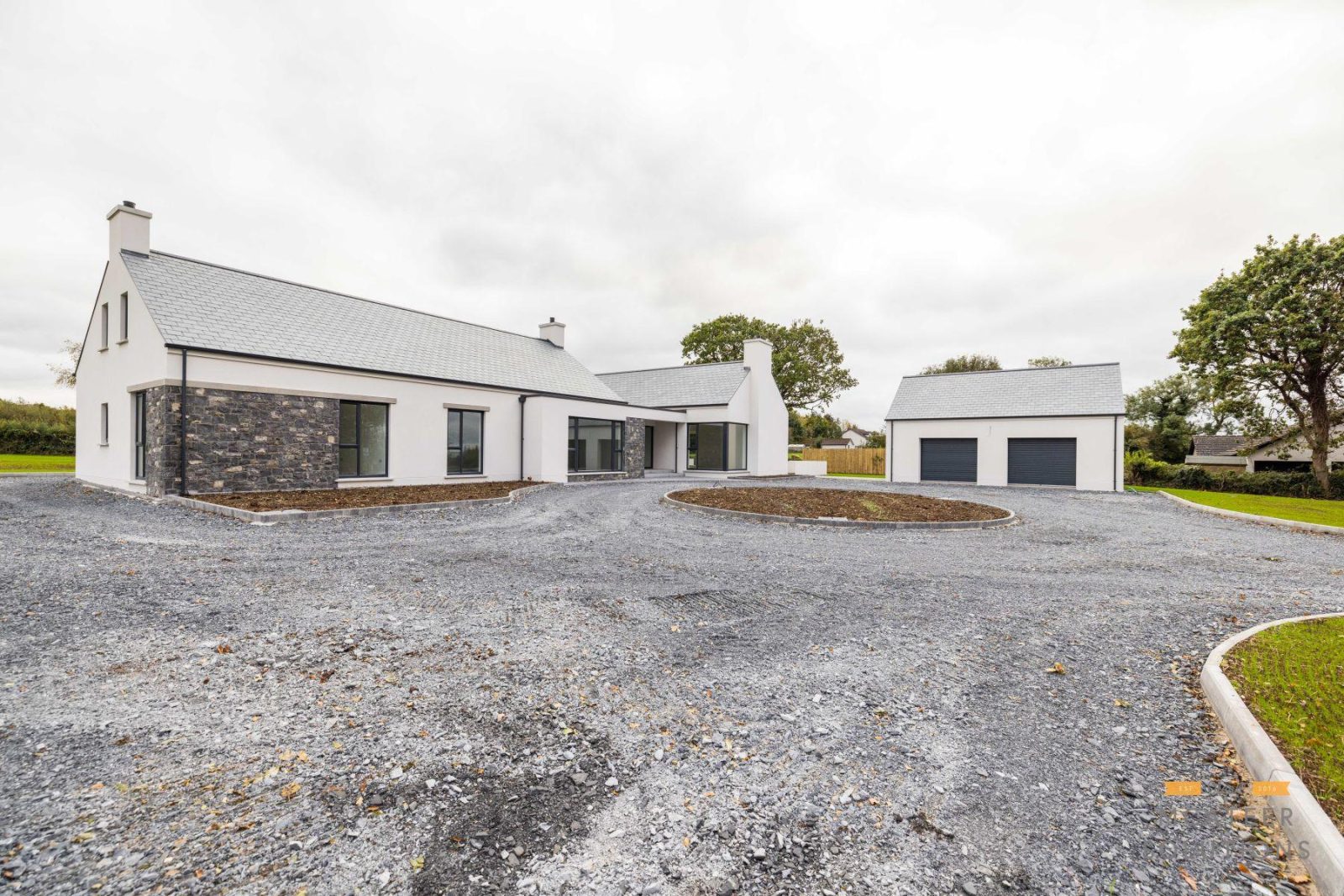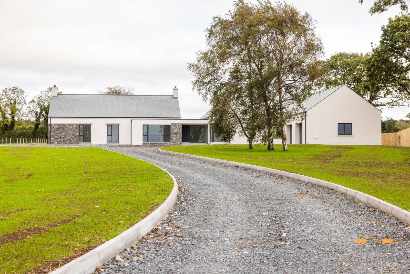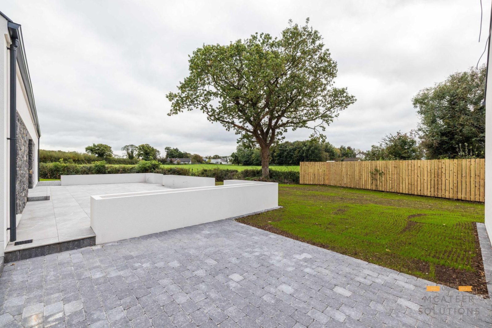 Boasting road frontage with private access via entrance pillars from the Dungonnell Road, this property benefits from a sweeping driveway at approx. 170metres leading to this premium new build home and large detached double garage at an (additional 624 Sq Ft). The property also benefits from generous gardens to the front, side and rear with a private patio area beyond sliding patio doors from the open plan living area. Finished to an exceptionally high standard turnkey finish, the main property comprises of four large bedrooms, two of which have en-suite shower rooms with the ground-floor master bedroom also boasting a large walk-in dressing room. A bright and spacious hallway provides an impressive entrance, in addition to the main living room the property comprises of a large open plan kitchen / dining and family living area with large sliding patio doors providing access to property exterior. A convenient pantry area is located within the kitchen, spacious utility, two large family bathrooms and rear hall with ground floor W/C.