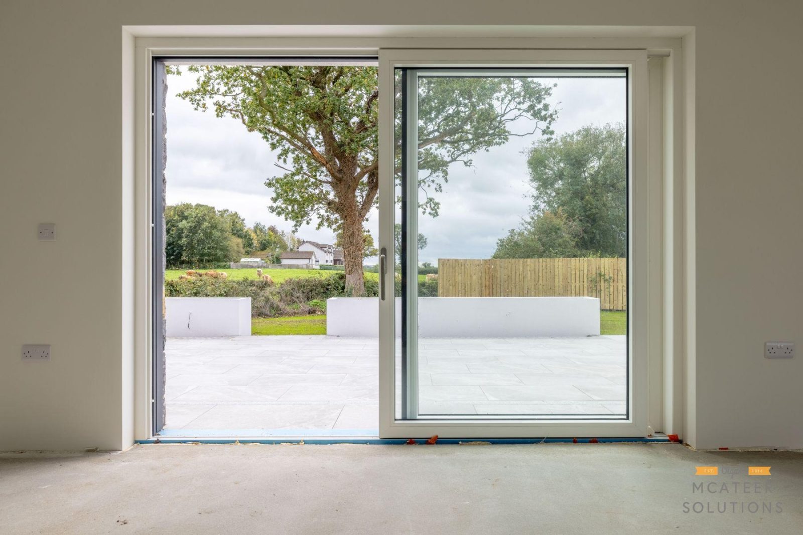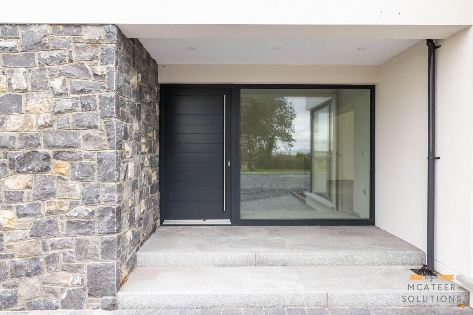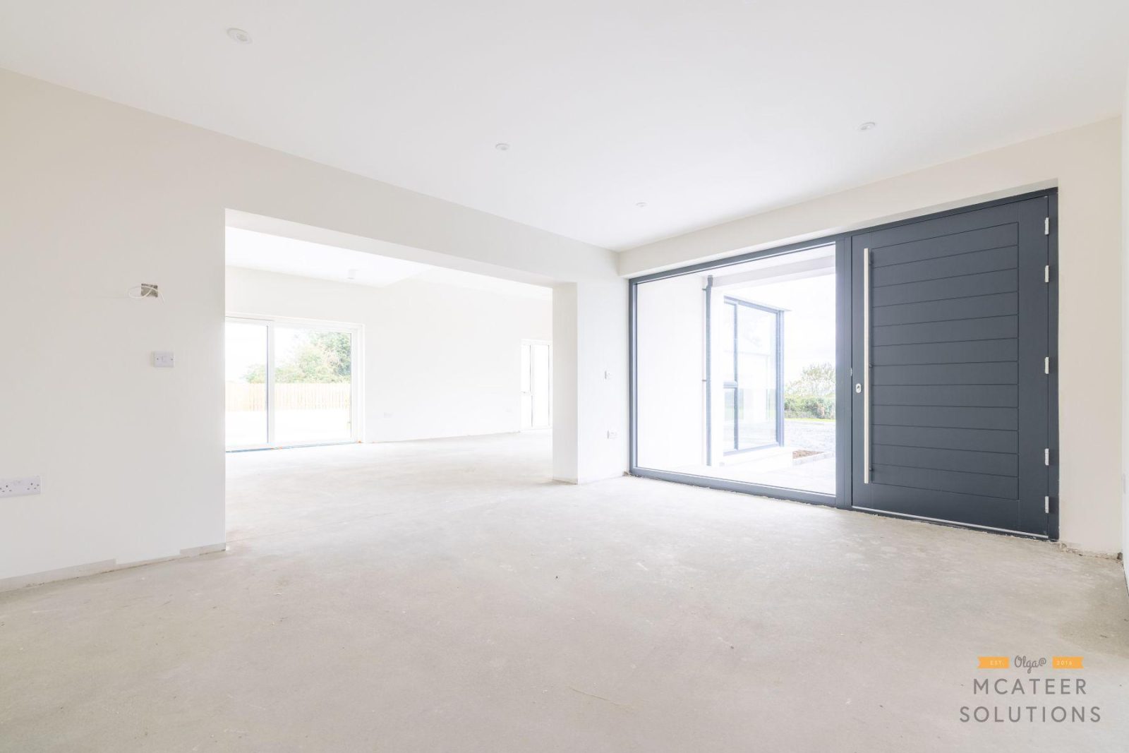 Entrance Hall: Porcelain tile step, composite front door with large floor to ceiling window, buyers’ choice of floor finish. Measurements: 4.83m x 3.66m.