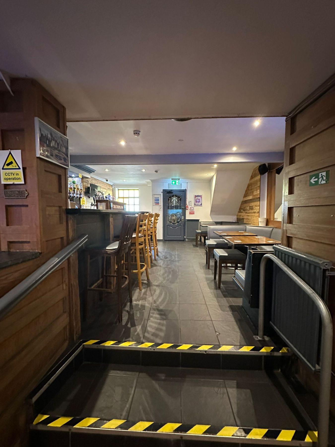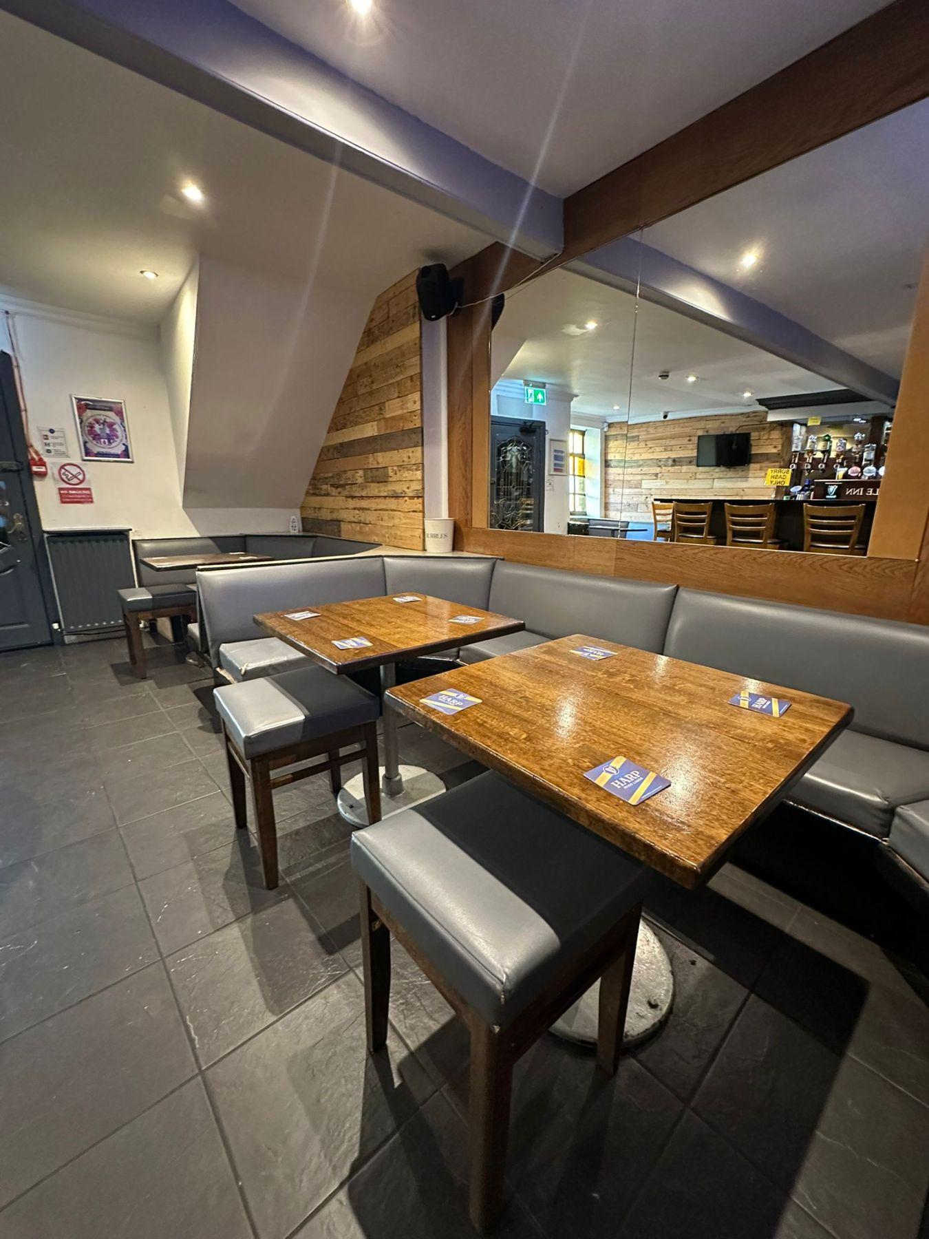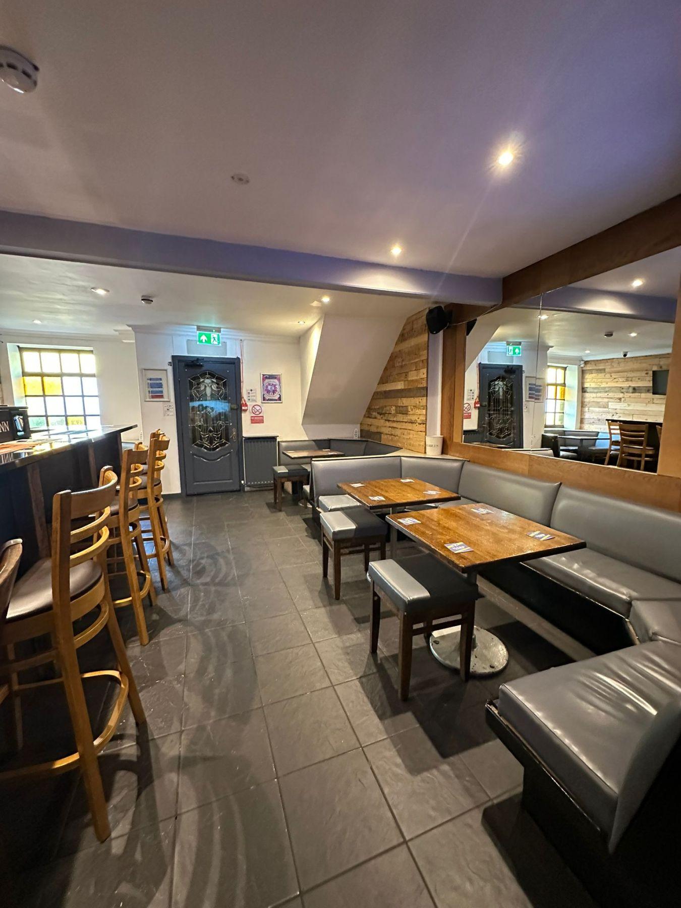 Front Lounge: Warm and welcoming front lounge full of character, mix of tiled, wooden and carpet flooring throughout, stained glass windows, fitted seating, bar area. Measurements: 15.46m x 5.19m Bar Area 4.39m x 1.6m